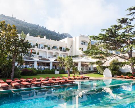 Das Jumeirah Capri Palace liegt auf der kostbaren Insel Capri über dem funkelnden Golf von Neapel und vereint mediterranen Stil mit luxuriöser Eleganz. Die Zimmer und Suiten sind klassisch inspiriert, oft mit Blick auf das Meer oder die umliegenden Gärten. Kulinarisch bietet das Hotel ausgezeichnete Restaurants mit regionaler und internationaler Küche, darunter ein mit Michelin-Sternen ausgezeichnetes Angebot. Wellness umfasst ein Spa mit Behandlungen, Sauna, Dampfbad und Fitness-Bereich. Der Außenpool, elegante Terrassen und ein Zugang zu einem kleinen Strandklippchen komplettieren das Angebot – ideal für Gäste, die Komfort, Stil und die einzigartige Capri-Atmosphäre schätzen.