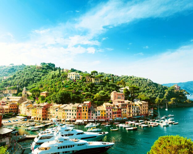 Nach dem Frühstück geht es zunächst nach Genua, eine der mächtigsten Handelsstädte des Mittelalters. Der ehemalige Reichtum der Stadt lässt sich vor allem in der Via Garibaldi erkennen: Die Patrizierhäuser und Paläste gehören seit 2006 zum UNESCO-Welterbe. Unübersehbar ist der romanisch-gotische Duomo di San Lorenzo im Zentrum der Altstadt. In seinem eher schlichten Inneren befinden sich Fresken byzantinischer Meister romanische Skulpturen und weitere sakrale Kunst. Sehenswert ist auch der Porto Antico, der ehemalige Industriehafen der Stadt, der in den 1990er Jahren von Renzo Piano vollkommen umgestaltet wurde. In den alten Lager- und Zollhäusern befinden sich heute Restaurants, Cafés und kleine Geschäfte. Zwischendurch darf natürlich ein Stück goldbraune, ofenfrische Focaccia alla Genovese nicht fehlen – außen knusprig, innen fluffig, und einfach unwiderstehlich. Anschließend geht es nach Santa Margherita Ligure. Sie wohnen im Grand Hotel Miramare direkt am Meer. Das traditionelle Haus eröffnete 1903 und empfängt seine Gäste auf höchstem Niveau in einem verspielten historischen Flair mit modernem Kick. Santa Margherita Ligure ist eine kleine, elegant-mondäne Hafenstadt an der Riviera di Levante und ein perfekter Ausgangspunkt, um weitere Schönheiten Liguriens zu entdecken. (F/S)