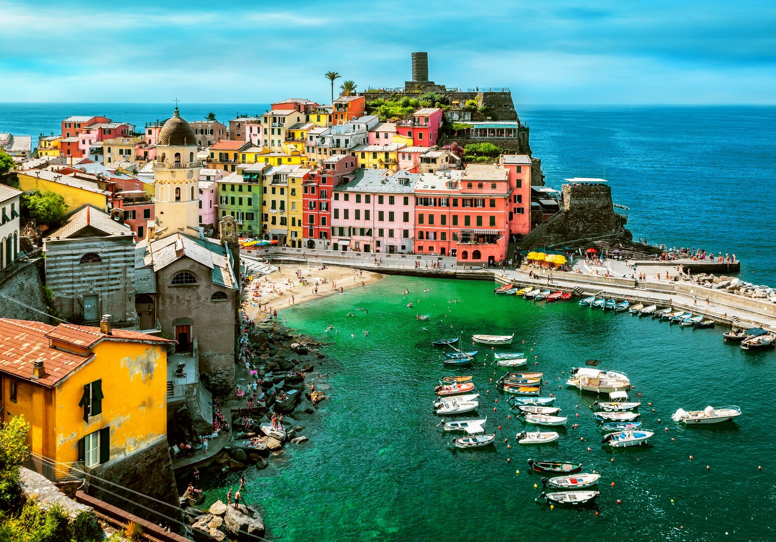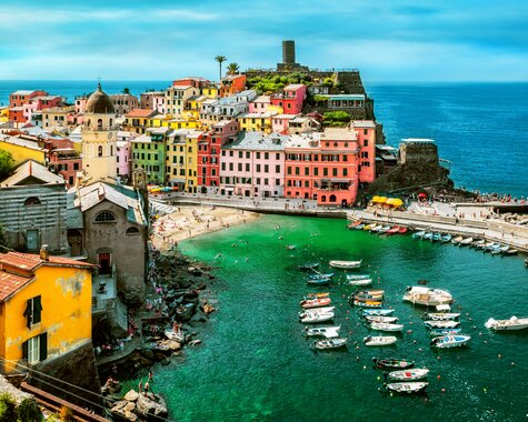 Cinque Terre – die fünf Dörfer sind der Inbegriff italienischer Städtchen an schroffer Küste. Die bunten Häuser scheinen an den Steilhängen zu kleben, in den Häfen liegen Fischerboote, in den Trattorien werden köstliche Meeresfrüchte serviert. Der beste Weg, die Dörfer zu erkunden, ist die Bahn, die sie miteinander verbindet. Zunächst geht es nach Monterosso, den größten Ort der Cinque Terre und Teil des gleichnamigen Nationalparks an der ligurischen Küste. Nach Besichtigung des Ortes Weiterfahrt mit dem Zug nach Vernazza, vielleicht das schönste Dorf der Cinque Terre mit seinem romantischen Hafen. Genießen Sie die verzauberte Atmosphäre und gönnen Sie sich ein Gelato. Von hier unternehmen Sie eine ca. zweistündige, mittelschwere Wanderung zum nächsten Ort, nach Corniglia. Dabei wandern Sie durch Olivenhaine, Weinberge und mediterranes Gebüsch und haben einen fantastischen Blick. Alternativ nehmen Sie auch für diese Teilstrecke den Zug. Vom letzten Dorf, von Manarola, nehmen Sie das Boot zurück nach Monterosso, so dass Sie die hübschen Orte nochmal vom Meer aus bewundern können – fantastische Panoramen sind garantiert. Mit dem Zug geht es anschließend zurück nach Santa Margherita Ligure. (F)