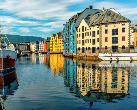 Der Tag gehört ganz Ihnen. Ålesund verzaubert mit einzigartiger Jugendstilarchitektur, Inselblicken und maritimem Flair. Spazieren Sie durch die Stadt, entdecken Sie kunstvoll verzierte Fassaden, Cafés, kleine Boutiquen. Ein Aufstieg zum Aksla-Aussichtspunkt belohnt mit einem spektakulären Panoramablick über die Stadt und die umliegenden Inseln. Für Kulturinteressierte lohnen das Jugendstilzentrum, das Kunstmuseum KUBE sowie der faszinierende Atlanterhavsparken – eines der größten Salzwasseraquarien Nordeuropas. Besuchen Sie den Molja-Leuchtturm, das Fischereimuseum oder das Sunnmøre-Museum mit seinen historischen Bauernhäusern. Auch die neugotische Ålesund-Kirche ist einen Blick wert. Genießen Sie kulinarisch die ganze Vielfalt Norwegens: ob frischer Fisch, traditionelle Fleischgerichte oder Spezialitäten wie Rømmegrøt. (F)
