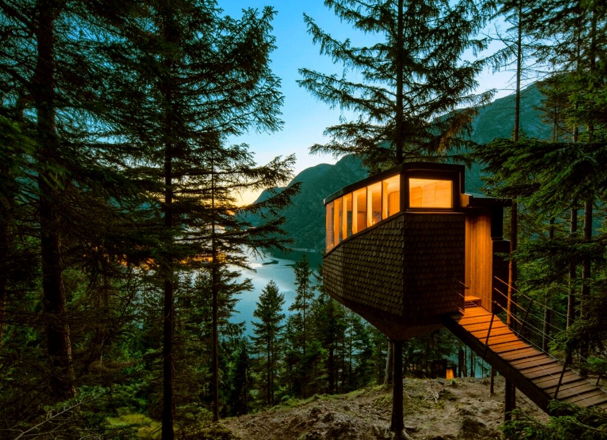Die Route nach Odda zählt zu den landschaftlich schönsten Norwegens – mit jeder Kurve eröffnet sich ein neues Postkartenmotiv. In Norheimsund und Øystese genießen Sie stille Fjordmomente, während der Steinsdalsfossen zum Spaziergang hinter einem donnernden Wasserfall einlädt. In Norheimsunds Schifffahrtsmuseum erleben Sie norwegische Seefahrertradition hautnah. Entlang des Hardangerfjords laden charmante Obsthöfe zu einer Verkostung des berühmten Hardanger Ciders ein – fruchtig, herb, unverfälscht. Kurz vor Odda lohnt ein Stopp am fotogenen Furebergfossen. Wer möchte, unternimmt noch einen Abstecher zum Folgefonna-Gletscherzentrum oder zum historischen Baroniet Rosendal. Am Abend erreichen Sie Odda, das Tor zur Trolltunga – und Ihre Unterkunft ist ein ganz besonderes Erlebnis: das Woodnest ist ein architektonisches Meisterwerk hoch in den Baumwipfeln. Ihre luxuriöse Baumhaus-Suite mit Panoramafenstern bietet Ihnen einen überwältigenden Ausblick über den Fjord. Umgeben von Vogelgezwitscher, Waldluft und skandinavischem Design genießen Sie einen Abend in völliger Ruhe – ob bei selbstgekochtem Essen oder in einem nahegelegenen Restaurant. (F)