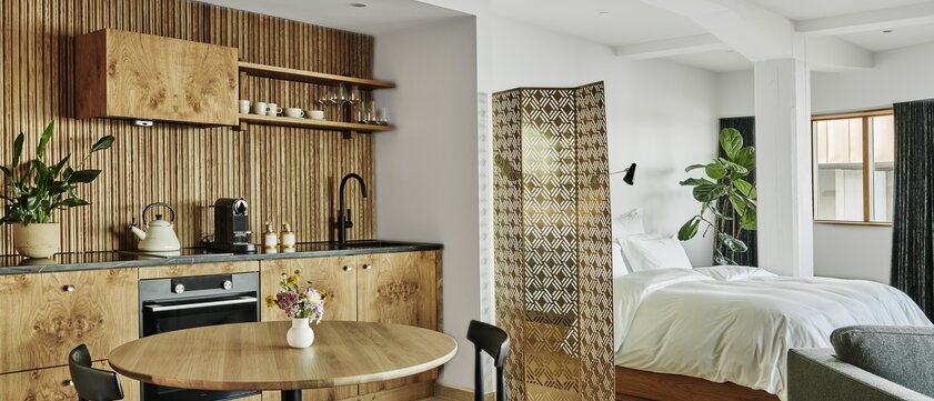 Das Eilert Smith Hotel ist ein stilvolles Boutique-Hotel in einem funktionalistischen Gebäudekomplex von 1937, zentral in Stavanger gelegen – zwischen historischen Holzhäusern und modernen Gebäuden. Die 12 individuell gestalteten Zimmer und Suiten verbinden nordische Eleganz, hochwertige Materialien und moderne Annehmlichkeiten wie Nespresso-Maschine, beheizte Fußböden und Spa-ähnliche Bäder. Im Erdgeschoss befindet sich das renommierte RE-NAA, ein mit zwei Michelin-Sternen ausgezeichnetes Restaurant, das regionale Meeresfrüchte, Wild sowie Gemüse in künstlerisch inszenierten Gängen serviert. Mit persönlichem Service, Concierge und der Nähe zur Altstadt und zum Hafen ist es der perfekte Rückzugsort für Genießer und Kulturliebhaber zugleich.