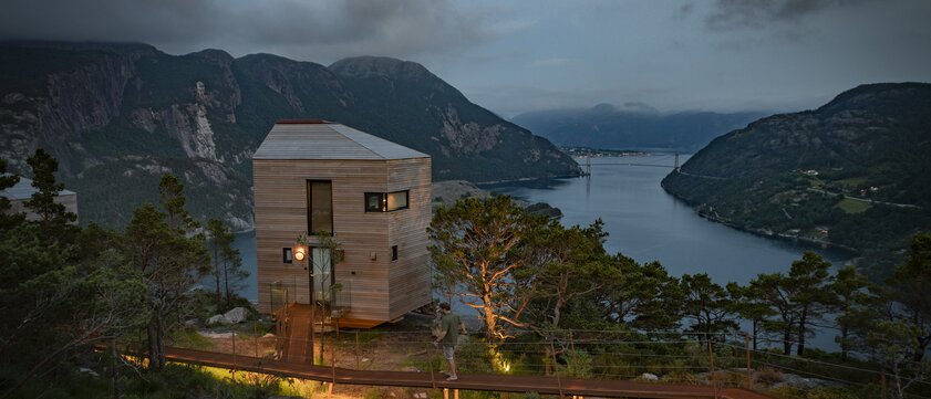 Flug mit Lufthansa von Frankfurt nach Stavanger (Flugdauer ca. 2 Stunden). Am Flughafen übernehmen Sie Ihren Mietwagen für die kommenden sechs Tage – und schon beginnt Ihre außergewöhnliche Reise durch die spektakuläre Fjordwelt Norwegens. Ihre erste Etappe führt Sie nach Forsand, wo hoch über dem Lysefjord ein Ort wartet, der Naturerlebnis und Architektur in vollendeter Harmonie verbindet: The Bolder Skylodge. Gemeinsam mit renommierten Architekten und Designern wurden hier sechs zurückgezogene Lodges erschaffen, die scheinbar über den Felsen schweben – eingebettet zwischen uralten Kiefern und Granit aus der Eiszeit. Ihre Unterkunft: die exklusive Grand Lodge, ein stilvoller Rückzugsort mit zwei Schlafzimmern, einer edlen Lounge, Designmöbeln von Vipp und einer offenen Küche mit Panoramablick. Bodentiefe Fenster holen die atemberaubende Landschaft direkt ins Wohnzimmer. Zum Ankommen erwartet Sie eine köstliche Auswahl regionaler Tapas – frisch zubereitet, liebevoll angerichtet und mit Blick auf den majestätischen Lysefjord einfach unvergesslich. (A)