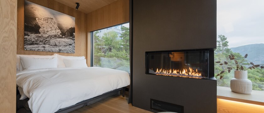 The Bolder Forsand bietet sechs exklusive Lodges mit modernem Design, großzügigen Wohnbereichen und bodentiefen Fenstern mit Panoramablick auf den Lysefjord. Die Ausstattung umfasst bis zu zwei Schlafzimmer, eine offene Küche und hochwertige Vipp-Möbel. Kulinarisch genießen Sie regionale Tapas, liebevoll zubereitet und perfekt auf die Umgebung abgestimmt. Zur Entspannung stehen ein Spa-Bereich und ein Fitnessraum zur Verfügung, die Rückzug und Wohlbefinden inmitten der Natur garantieren.
