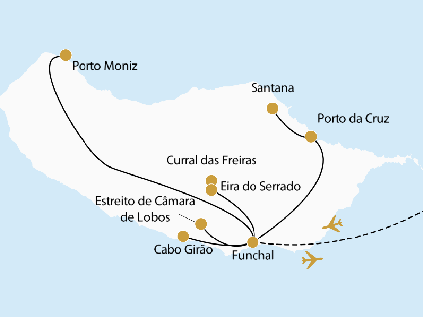 Nach dem Frühstück beginnt Ihre Entdeckungstour im Geländewagen – eine Fahrt durch die spektakulären Landschaften Madeiras, die sich zwischen Himmel und Atlantik spannen. Ziel ist Estreito de Câmara de Lobos, ein traditionsreicher Weinort, dessen terrassierte Hänge sich wie ein grünes Mosaik über die Berghänge legen. Hier gedeiht der berühmte Madeira-Wein – und mit ihm eine jahrhundertealte Kulturlandschaft. Weiter geht es zum Aussichtspunkt Boca dos Namorados, auf 1.000 Meter Höhe gelegen. Der Blick fällt tief hinab ins Curral das Freiras – das Tal der Nonnen, das sich dramatisch zwischen steilen Felswänden öffnet. Ein so rauer wie poetischer Anblick. Durch die Dörfer Jardim da Serra und Quinta Grande führt die Route weiter gen Norden. Nach der Durchfahrt des zweitlängsten Tunnels der Insel wechselt das Landschaftsbild: An der Nordküste empfängt Sie eine wildromantische Szenerie. Ein Höhepunkt ist die Fahrt durch den Lorbeerwald Laurissilva – Unesco-Weltnaturerbe. In seinem feuchten, moosgrünen Dämmerlicht liegt Vinhas do Tico, ein Weingut an der Nordspitze der Insel. Hier scheinen die Reben direkt in den Atlantik zu wachsen. Inmitten dieser dramatischen Kulisse genießen Sie ein Mittagessen mit regionalen Spezialitäten und verkosten die Weine des Hauses – begleitet vom Rauschen des Meeres. Zum Abschluss des Tages besuchen Sie die Naturpools von Porto Moniz – vulkanische Becken, die sich mit kristallklarem Meerwasser füllen. Ein Ort, an dem sich die Urkräfte der Insel in vollendeter Form zeigen. (F/M)