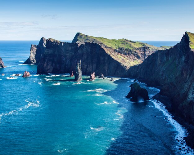 Madeira – eine Insel der Kontraste und Naturwunder. Tauchen Sie ein in die vielfältige und zauberhafte Welt, in der sich steile Felsküsten und sanfte Berglandschaften, dichte Lorbeerwälder und weite Meeresblicke, stille Dörfer und lebendige Städte zu einem harmonischen Ganzen fügen. Madeira, die Blumeninsel im Atlantik, erwartet Sie mit einer Reise voller Kontraste, Genüsse und unvergesslicher Eindrücke. Die dramatische Bergwelt lockt ins Innere der Insel. Besonders eindrucksvoll: eine Wanderung ins abgeschiedene Nonnental, Curral das Freiras, eingerahmt von steil aufragenden Gipfeln – ein Ort voller Mystik und Naturgewalt. Mit einem Katamaran gleiten Sie entlang der Küste, begleitet von einem Meeresbiologen. Halten Sie Ausschau nach Delfinen – oft neugierig, manchmal verspielt, immer faszinierend. Freuen Sie sich auf Lorbeerwälder, wildromantische Küsten, Blumengärten, Weinterrassen, und wandern Sie entlang der Levadas, faszinierende Wasserkanäle, die durch die Berge führen.