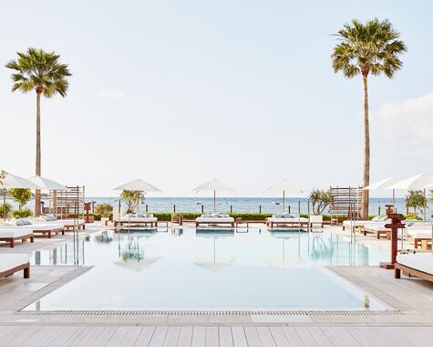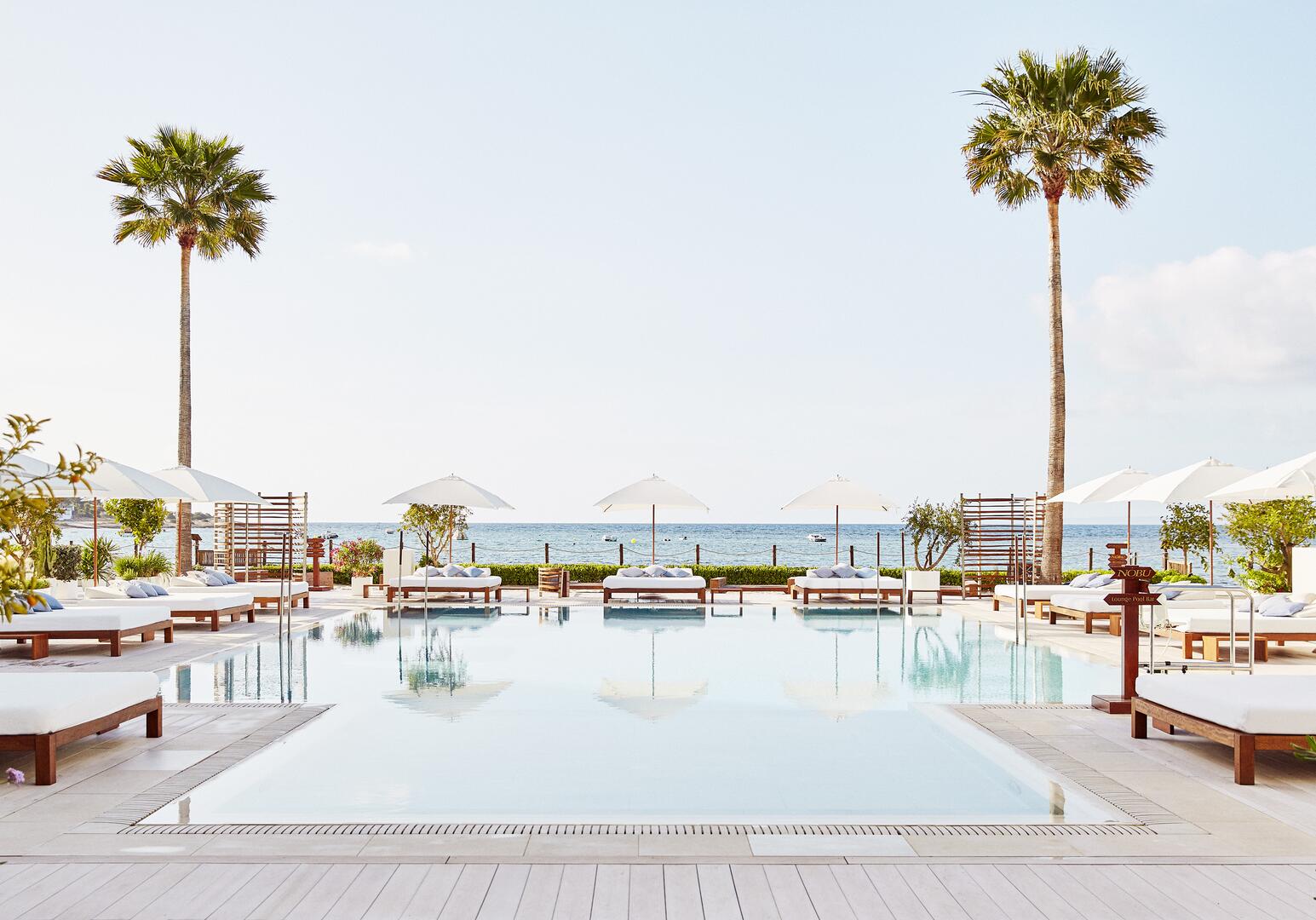 Das Nobu Hotel Ibiza Bay liegt direkt an der Küste von Talamanca auf Ibiza und verbindet modernes Design mit mediterranem Flair. Die Zimmer und Suiten bieten Meerblick und elegante Ausstattung. Kulinarisch punktet das Hotel mit dem bekannten Nobu-Restaurant, das japanische Küche mit lokalen Zutaten kombiniert. Wellnessangebote umfassen Spa-Behandlungen, Massagen, Sauna und Fitnessbereich. Ergänzt wird das Programm durch Pools, Strandzugang und diverse Freizeitaktivitäten, die einen komfortablen und stilvollen Aufenthalt ermöglichen.