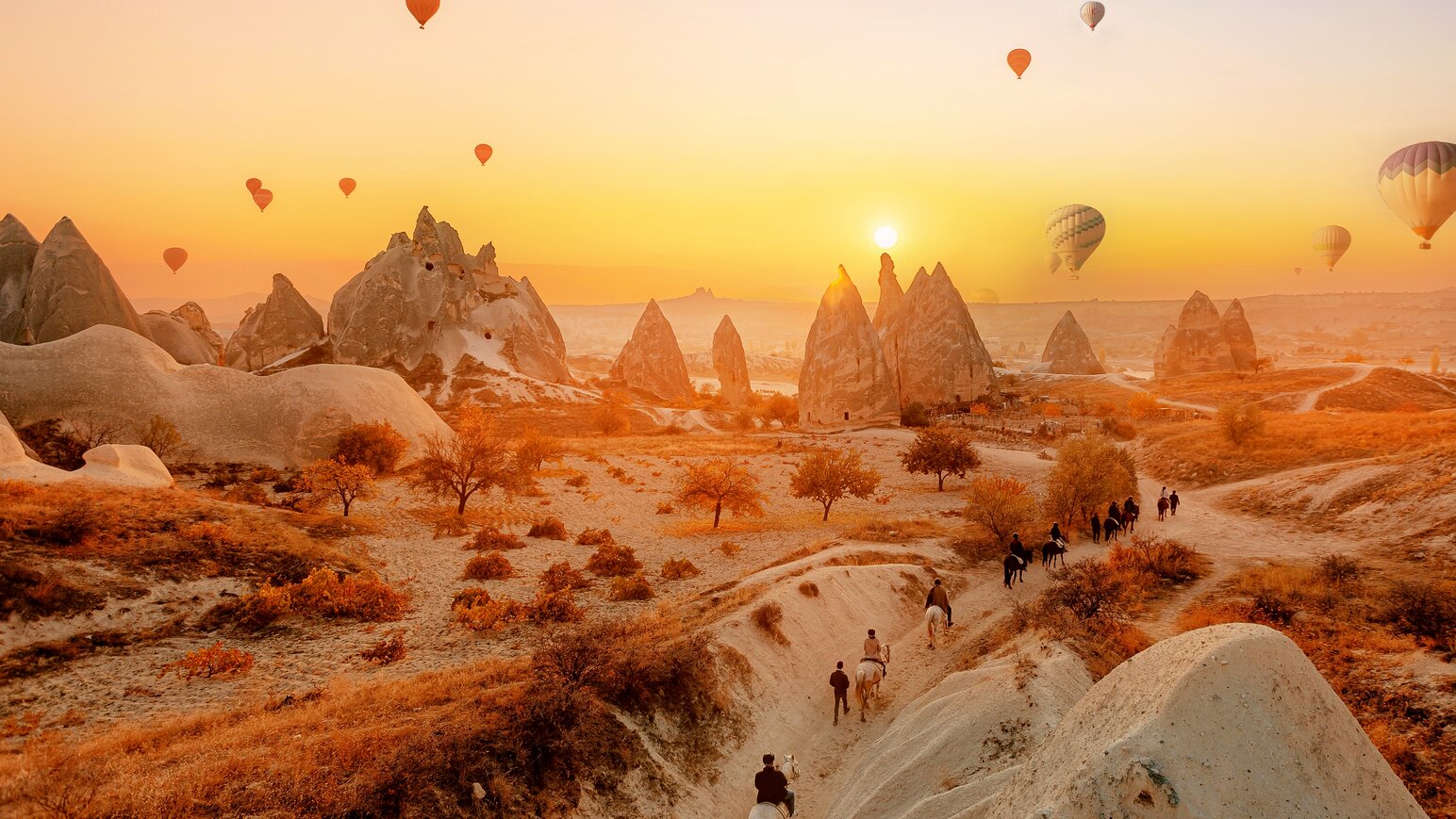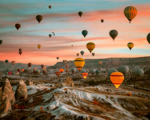 Ein absolutes Highlight jeder Türkei-Reise ist eine Heißluftballonfahrt bei Sonnenaufgang: Wenn die ersten Lichtstrahlen über die Mondlandschaften gleiten und Hunderte Ballons über Täler, Felskuppeln und Weinberge schweben, offenbart sich Kappadokien von seiner magischsten Seite. Die Stille der Lüfte und ein Spiel aus Farben und Licht – ein Erlebnis, das unvergesslich bleibt.