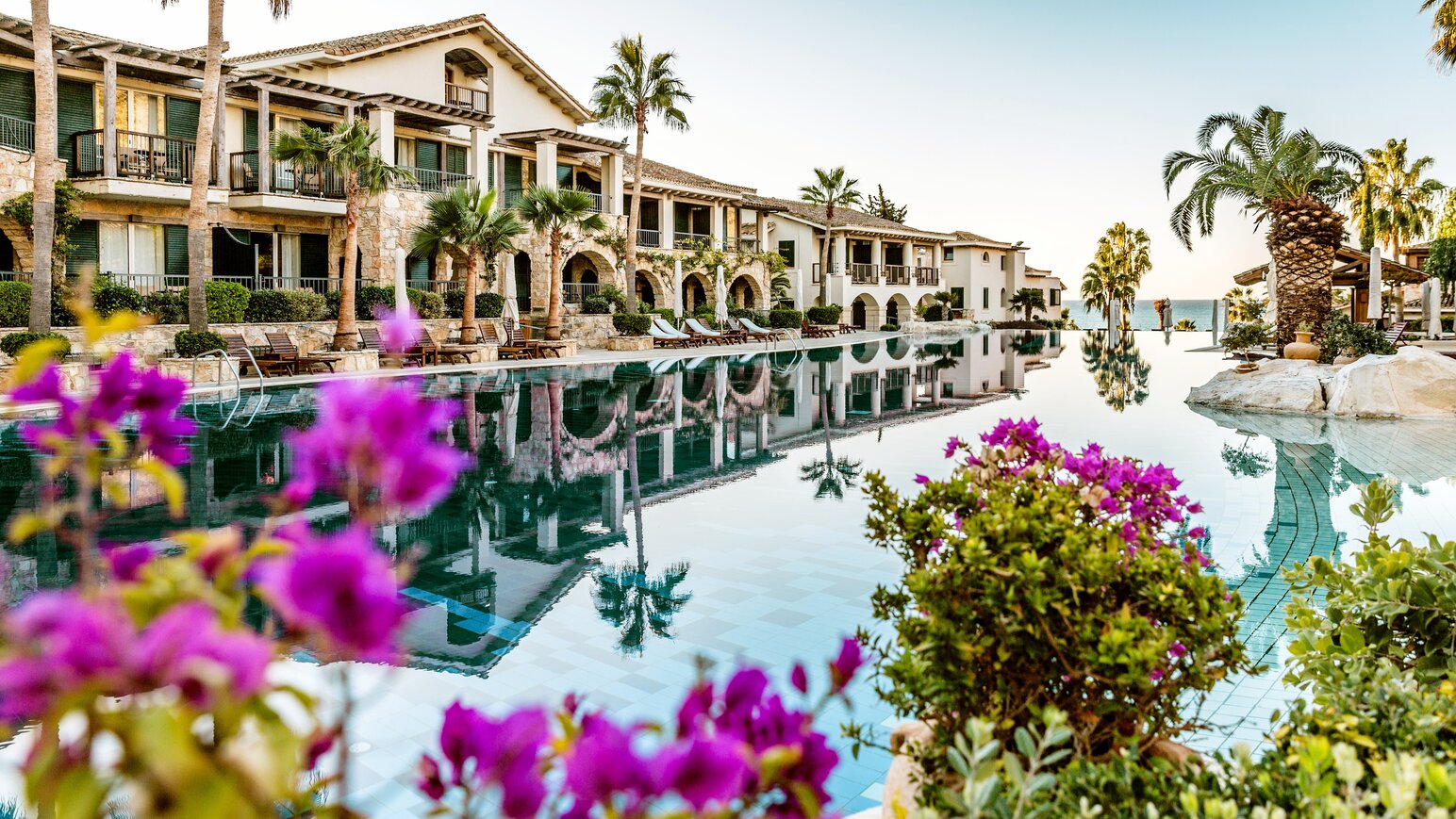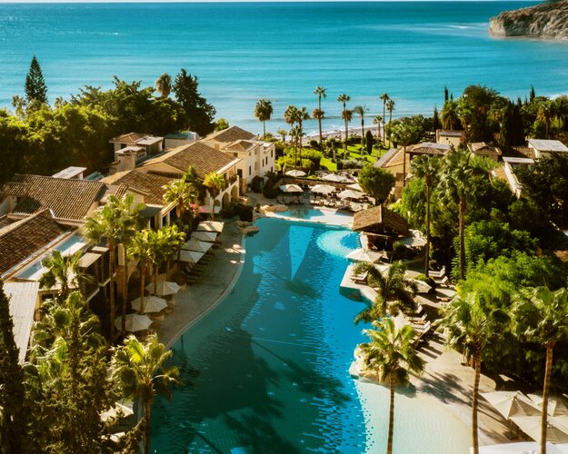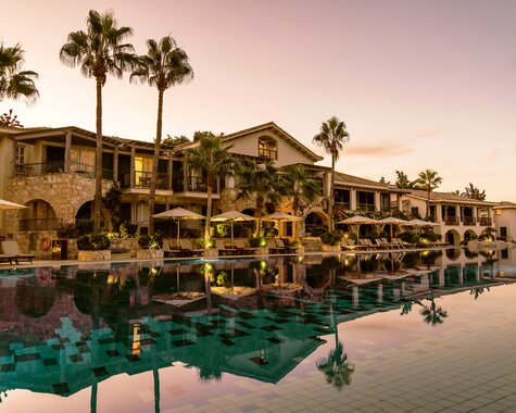 Team Hotels & HideawaysMajestätsich thront das Columbia Beach Resort an der Südküste von Zypern und strahlt oberhalb der idyllischen Pissouri-Bucht eine erhabene Ruhe aus. Die natürlichen Materialien der Insel verleihen der im zypriotischen Stil errichten Luxusanlage ein Flair, das Gemütlichkeit und Eleganz stilvoll vereint. Auch im Design der Suiten, das die wunderschöne Landschaft rundum gekonnt widerspiegelt, setzt sich der behagliche Charakter fort. Die palmenbestandene Außenanlage lädt zum Träumen ein: Der lagunenartige Infinitypool ist der perfekte Ort zum Abschalten – vielleicht ja mit einem Eis von der Swim-up Poolbar. Möchten Sie Ihre Auszeit aktiv gestalten, bieten Ihnen zwei Tennis- und zwei Squashplätze, das Fitnessstudio und Workout-Kurse eine Auswahl der Extraklasse. Anschließend können Sie sich im Spa regenerieren und mit einem frischen Saft im Ruhebereich den Moment genießen.
