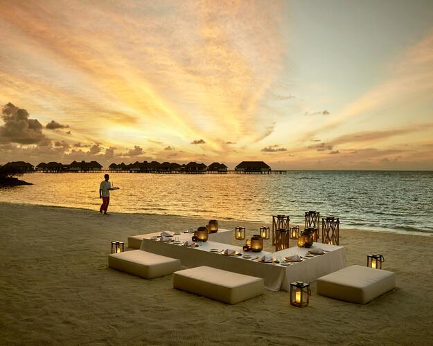 Im COMO Maalifushi finden Sie lauschige Orte für unvergessliche Mahlzeiten mit Gourmetspeisen auf dem Deck Ihrer Villa, Picknicks und Candlelight-Dinner am Strand. Die nahegelegenen, unbewohnten Inseln können Sie zum Sonnenaufgang oder –untergang ganz für sich allein genießen, während ein Butler die vom Küchenchef zubereiteten Speisen serviert.