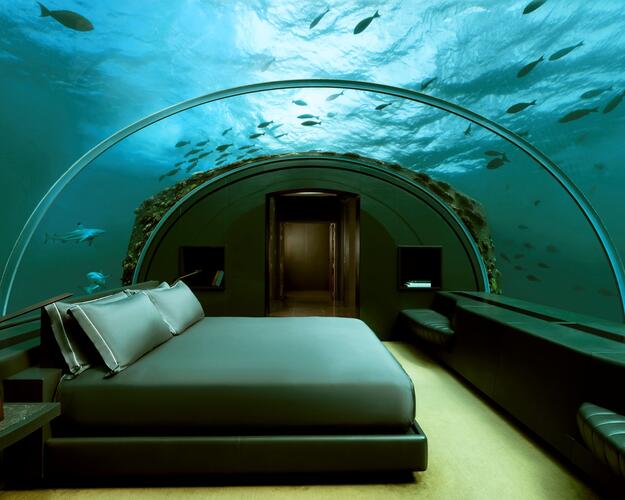 Reservieren Sie sich frühzeitig einen Platz im Ithaa – die begrenzte Platzanzahl macht dieses Unterwasserrestaurant zu einem der exklusivsten Erlebnisse der Inseln.