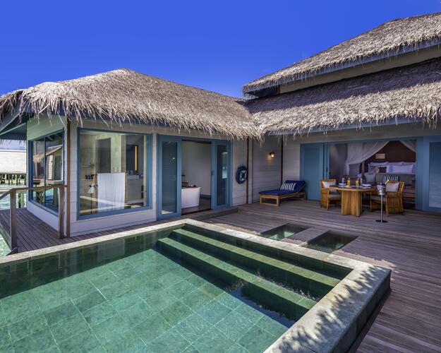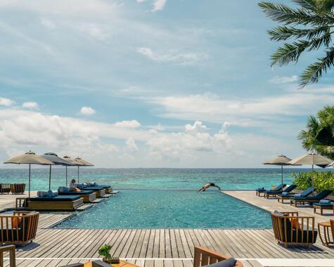 Raffles Maldives Meradhoo Resort ist ein exklusives, luxuriöses Insel‑Resort im Gaafu Alifu Atoll der Malediven mit eleganten Strand‑ und Überwasservillen – alle mit privatem Pool und persönlichem Butler‑Service. Die Unterkunft verbindet natürliche Schönheit mit exklusivem Service und bietet ruhige Privatsphäre weitab der üblichen Touristenrouten. Zum Erlebnis gehören Schnorcheln und Tauchen an den vielfältigen Hausriffen und im klaren Ozean, oft mit Sicht auf Meeresschildkröten, Mantas oder Walhaie. Es gibt zudem Yoga‑ und Fitnessprogramme, PADI‑Tauchzentrum, Wassersportarten wie Kajak, Paddleboard und Segeln, exklusive Boots‑ und Sonnenuntergangstouren sowie Entspannung im Overwater‑Spa mit Wellness‑Behandlungen. Kulinarisch warten mehrere Restaurants und Bars mit internationaler, Nikkei‑ und Grill‑Küche sowie besondere Erlebnisse wie private Dinner auf Sandbänken oder romantische Bootsdinner.