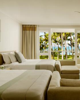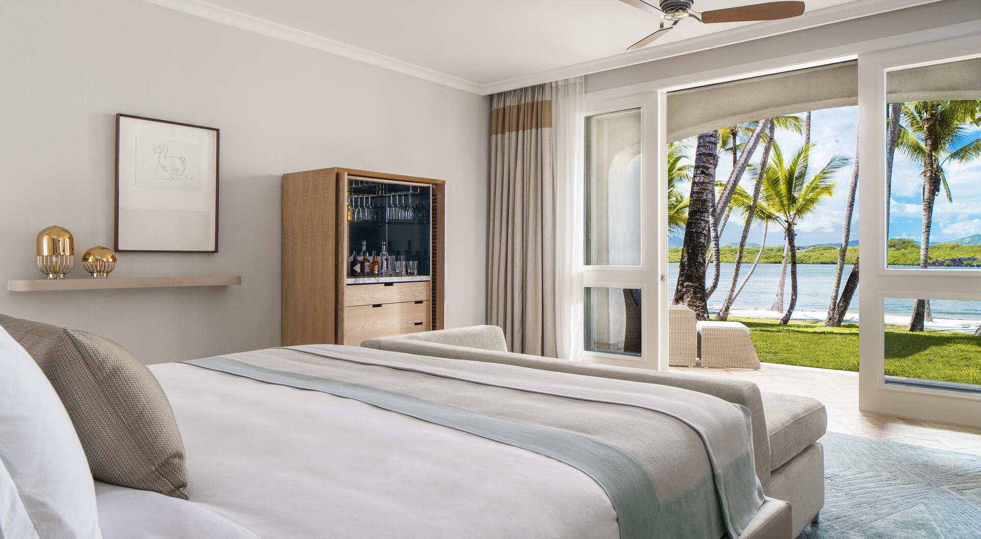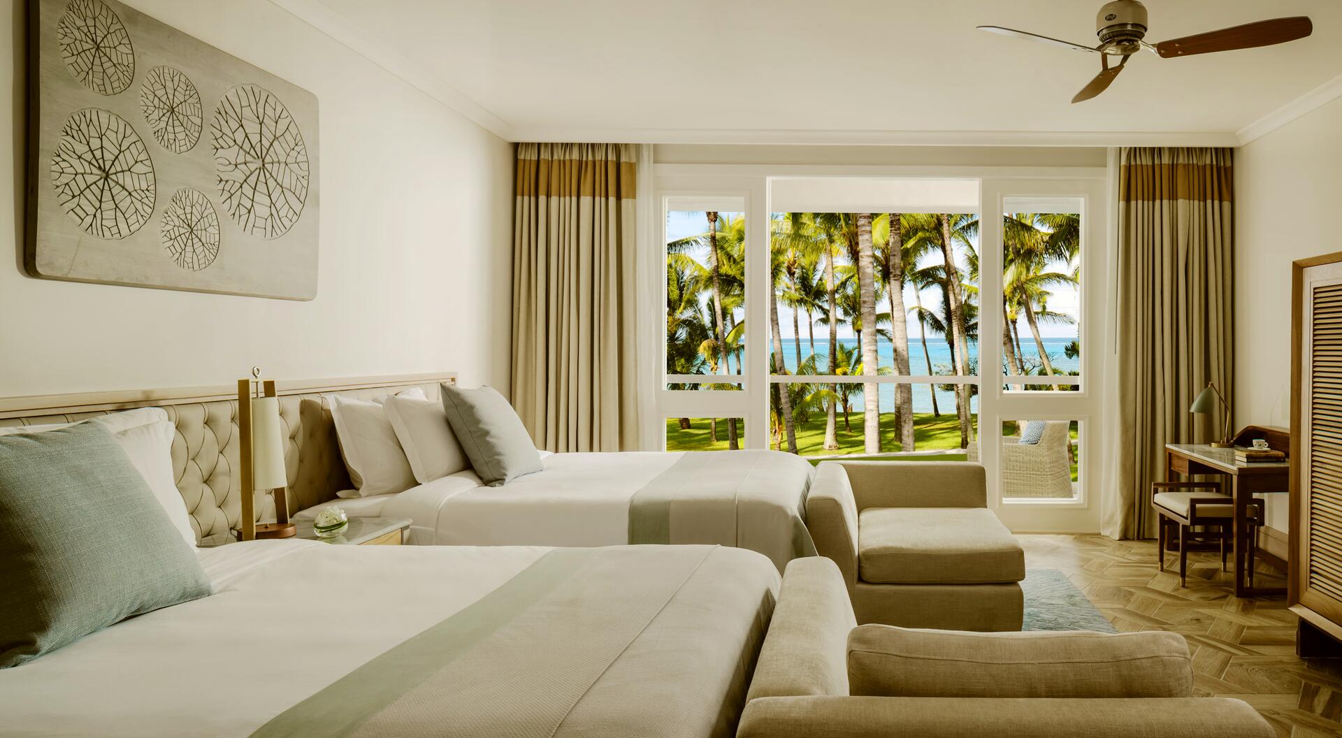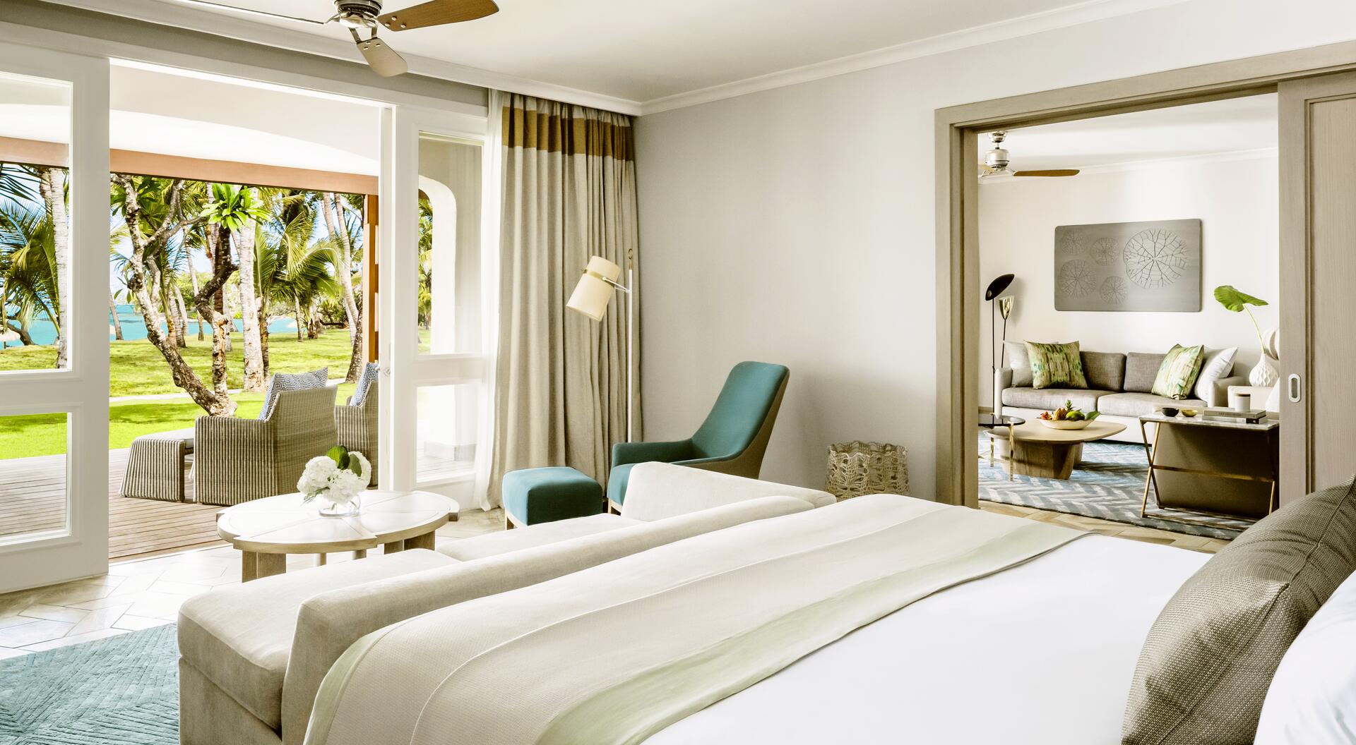 Egal ob Sie nach Ihrer Landung am Airport mit einem Luxus-SUV zum Hotel gefahren werden oder Ihren Urlaub stilecht mit einem 15-minütigen Transfer via Helikopter eröffnen – die unvergleichliche Aura des One & Only Le Saint Geran wird Sie sofort in ihren Bann ziehen und schon kurz nach Ihrem entspannten Empfang neue Maßstäbe definieren. Sie haben die Wahl aus insgesamt 17 Zimmerkategorien, die sich in die Segmente Zimmer, Junior-Suiten und Suiten einteilen und Ihren Aufenthalt je nach Typ und Lage mit wunderschönen Ausblicken auf die idyllische Lagune, den traumhaften Strand oder den tiefblauen Ozean bereichern. Außerhalb Ihres Domizils verströmt die penibel gepflegte Anlage des Resorts dank unzähliger Palmen und exotischer Pflanzen einen charmanten natürlichen Charme, der beruhigend und inspirierend zugleich ist. Erholsame Urlaubsmomente versprechen die feinsandigen, weißen Strände, wobei Sie zum Sonnenbaden bequeme Liegen und hölzerne Schirme nutzen können, ehe Sie sich im glasklaren kühlen Nass des Ozeans erfrischen. Fernab der Sandbänke lockt indes das Hotel mit ebenso spektakulären wie ganzheitlichen Annehmlichkeiten und Angeboten, die Ihr Luxus-Erlebnis noch exklusiver machen.