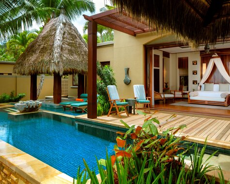 Auf pures Urlaubsglück inmitten paradiesischer Natur dürfen Sie sich bei einem Aufenthalt im Anantara Maia Seychelles Villas auf der Insel Mahé freuen. Das einmalige Ambiente ist geprägt von den komfortablen Poolvillen, die im edlen Kolonialstil gehalten sind und von denen Sie direkten Zugang zu Ihrem eigenen Außenpool haben. Für kulinarische Genüsse sorgt das Gourmetrestaurant Tec-Tec, das landestypische Speisen mit Blick auf den weiten Sandstrand kredenzt.