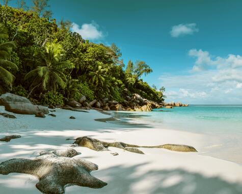 Inselhopping mit Postkartenfeeling: türkisfarbenes Meer, markante Granitfelsen und die besondere Leichtigkeit des Indischen Ozeans.