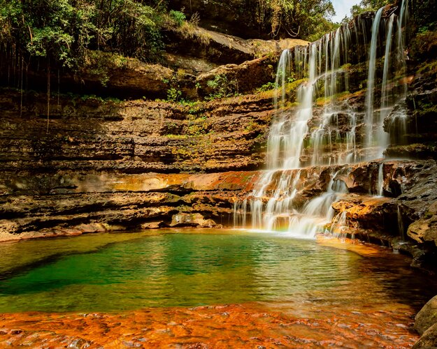Heute brechen Sie zu einem Tagesausflug nach Cherrapunjee auf, das von den Einheimischen Sohra genannt wird. Hoch oben auf einem nebelverhangenen Plateau gelegen, galt es einst als der nasseste Ort der Erde – und noch heute spürt man hier die Kraft der Elemente in jeder Windböe und jeder Wolkenwand, die sich an den Berghängen bricht. Ihre erste Station ist der Garden of Caves – ein verstecktes Naturparadies, das mit rauschenden Wasserfällen, moosbedeckten Felsen und verwunschenen Waldpfaden begeistert. Dieser Ort ist eine Oase für stille Entdecker und ein Traum für Fotografen. Anschließend geht es weiter zur Arwah-Höhle, einer gewaltigen Kalksteinhöhle, deren Inneres mit uralten Fossilien, bizarren Stalaktiten und Stalagmiten gespickt ist. Ein weiteres Highlight erwartet Sie mit den Nohkalikai-Wasserfällen – einem der höchsten freifallenden Wasserfälle Indiens. Aus über 340 Metern stürzt das Wasser in ein smaragdgrünes Becken, umrahmt von schroffen Klippen und dichtem Grün. Besonders in der Monsunzeit ein tosendes Schauspiel, doch auch in den trockeneren Monaten beeindruckt der Ort mit seiner dramatischen Kulisse und weiten Ausblicken über das Tal. Ihr Mittagessen genießen Sie unterwegs in einem landestypischen Restaurant. Am späten Nachmittag kehren Sie nach Shillong zurück – erfüllt von Bildern, Klängen und Eindrücken eines Tages zwischen Himmel, Stein und Wasser. (F/A)