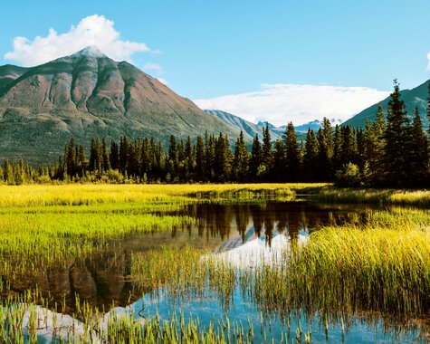 Ihr Driverguide empfängt Sie nach dem Frühstück im Hotel und bringt Sie in eine der berühmtesten Gegenden Alaskas, in den Denali-Nationalpark. Genießen Sie die Fahrt durch boreale Wälder, legen Sie unterwegs Fotostopps ein oder unternehmen Sie kürzere Wanderungen. Lohnenswert ist zum Beispiel der Savage River Loop Trail: Dieser Rundweg führt auf beiden Seiten des Savage River entlang und führt durch ein wunderschönes Wildnisgebiet. Sie wohnen in der Tonglen Lake Lodge in himmlischer Einsamkeit an einem weitläufigen See – ein Ort der Inspiration, Entspannung und Schönheit. Ihr Zuhause, eine private Cabin im Wald, ist charmant rustikal und doch luxuriös mit Werken von Künstlern aus der Region und handgefertigten Holzmöbeln ausgestattet. (F)