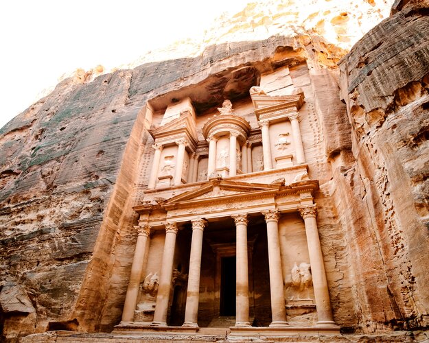 Erkunden Sie die Höhepunkte Petras und genießen Sie mit Muße den Ausblick über das Ruinenfeld und die grandiose Berglandschaft. Die antike Stadt ist eines der "Sieben Weltwunder der Neuzeit" und der wertvollste Schatz Jordaniens. Die Nabatäer, ein emsiges, arabisches Volk, schlugen diese riesige Stadt vor mehr als 2.000 Jahren mühevoll in die Sandsteinwände. Der Weg nach Petra führt über einen versteckten Pfad, der Siq, von mehr als zwei Kilometer Länge, der auf beiden Seiten von hohen Felsen umgeben ist. Schon der Gang durch das schmale Felsental ist ein einzigartiges Erlebnis. Farben und Feldkonstruktionen sind überwältigend. Am Ende der Schlucht erhaschen Sie den ersten Blick auf das Schatzhaus "Khazne al-Firaun". Die massive Fassade, die aus dem rosafarbenen Gesteinsabhang geschlagen wurde, stellt alles um sich herum in den Schatten. Sie wurde im 1. Jahrhundert als Grab eines Nabatäerkönigs gemeißelt und ist ein hervorragendes Beispiel für das technische Genie dieses alten Volkes. Die Schatzkammer ist aber nur das erste der vielen Wunder von Petra. Es gibt hunderte feiner, aus dem Fels geschlagener Gräber mit aufwendigen Inschriften. In Petra steht außerdem ein riesiges, von den Nabatäern im römischen Stil erbautes Theater. Es gibt Obelisken, Tempel, Opferaltäre und Kolonnaden gesäumte Straßen. Lassen Sie sich vom märchenhaften Zauber dieses neuen Weltwunders betören. Neben der bekanntesten Route durch den Siq zum Schatzhaus gibt es noch viele weitere Wanderwege zu hervorragenden Aussichtspunkten. Starten Sie beispielsweise in Little Petra und betreten die große Schwester über „The Back Door“. Gute Wege führen zum Wadi Ghurab hinunter, inmitten mächtiger Sandsteinberge. Der Weg ist teilweise verengt, bevor Sie ein verstecktes Plateau hoch über dem beeindruckenden Abgrund das Wadi Siyyagh erreichen. Gleich dahinter, in die Felswand gehauen, finden Sie das überwältigend schöne Monument „Das Kloster“. Es gibt unzählige weitere Wanderrouten rund um Petra mit einer Dauer zwischen 2,5 und 8 Stunden, mit bis zu 17,5 km Länge. Ein Wanderstock und festes Schuhwerk sind absolut empfehlenswert. Die Wege sind uneben und sehr weit. (F/M)