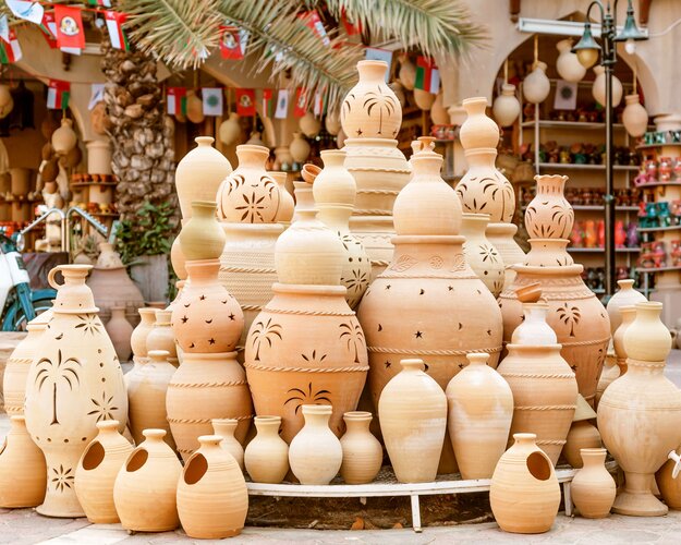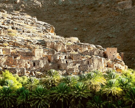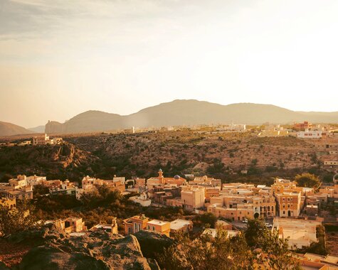 Nach dem Frühstück verlassen Sie Nizwa und besuchen die malerischen Dörfer Al Hamra und Al Ain. Weiter geht es zum eindrucksvollen Jabreen Castle mit kunstvoll verzierten Decken und spannender Geschichte. In Bahla nehmen Sie an einem Töpfer-Workshop teil und erleben die jahrhundertealte Handwerkskunst der Region. Besonders faszinierend sind das fast verlassene Lehmziegeldorf Al Hamra und das traditionelle Dorf Misfat Al Abriyeen mit seinen grünen Terrassengärten. Am späten Nachmittag erreichen Sie die beeindruckende Hochgebirgsregion Jabal Akhdar - ein spektakuläres Naturjuwel mit weiten Ausblicken über die Berglandschaft und den „Grand Canyon“ des Omans, wo Sie den Tag unter dem Sternenhimmel ausklingen lassen. (F/A)