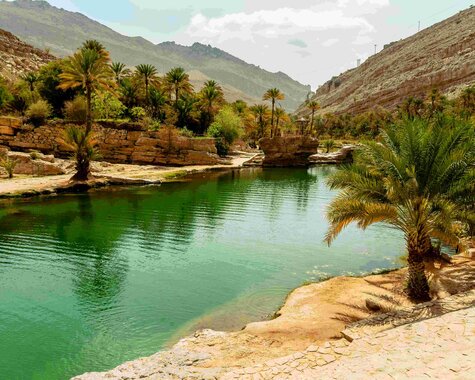 Frühaufsteher können optional eine Heißluftballonfahrt bei Sonnenaufgang erleben – ein unvergesslicher Blick über die Wüste. Nach dem Frühstück fahren Sie zum malerischen Wadi Bani Khalid, wo Sie in natürlichen Pools baden können. Danach geht es weiter zum Oman Across Ages Museum. Nach dem Mittagessen erwartet Sie das kleine Oasendorf Birkat al Mauz. Erfahren Sie mehr über die traditionelle Falaj-Bewässerung. Das teils unterirdisch verlaufende Bewässerungssystem, welches es im Sultanat Oman schon seit 2.000 Jahren gibt und bis heute die Menschen mit dem kühlen Nass versorgt. Anschließend fahren Sie nach Nizwa, wo Sie im Hotel einchecken und abends ein regionales Abendessen in der historischen Festungsstadt genießen. (F/M/A)