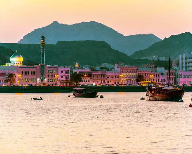 Frühmorgens landen Sie in der Hauptstadt Maskat und werden anschließend zu Ihrem Hotel mit Panorama- und Stadtblick gebracht. Nach einem erholsamen Vormittag und Entspannung im Hotel beginnt erst am Nachmittag Ihre Entdeckungstour: Sie besichtigen das elegante Royal Opera House und machen einen Fotostopp am Al-Alam-Palast, der malerisch zwischen den portugiesischen Festungen Jalali und Mirani liegt. Zum Abschluss schlendern Sie durch den Muttrah Souk – begleitet von omanischen Snacks und einem Begrüßungsgetränk. Abendessen im stilvollen Restaurant Bait Yasmine. Übernachtung in Maskat. (F/A)