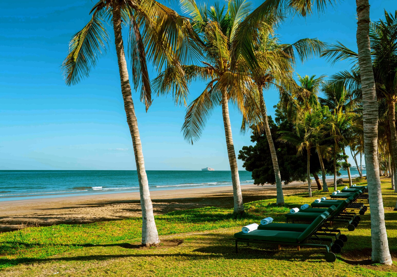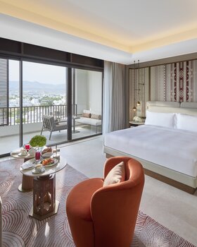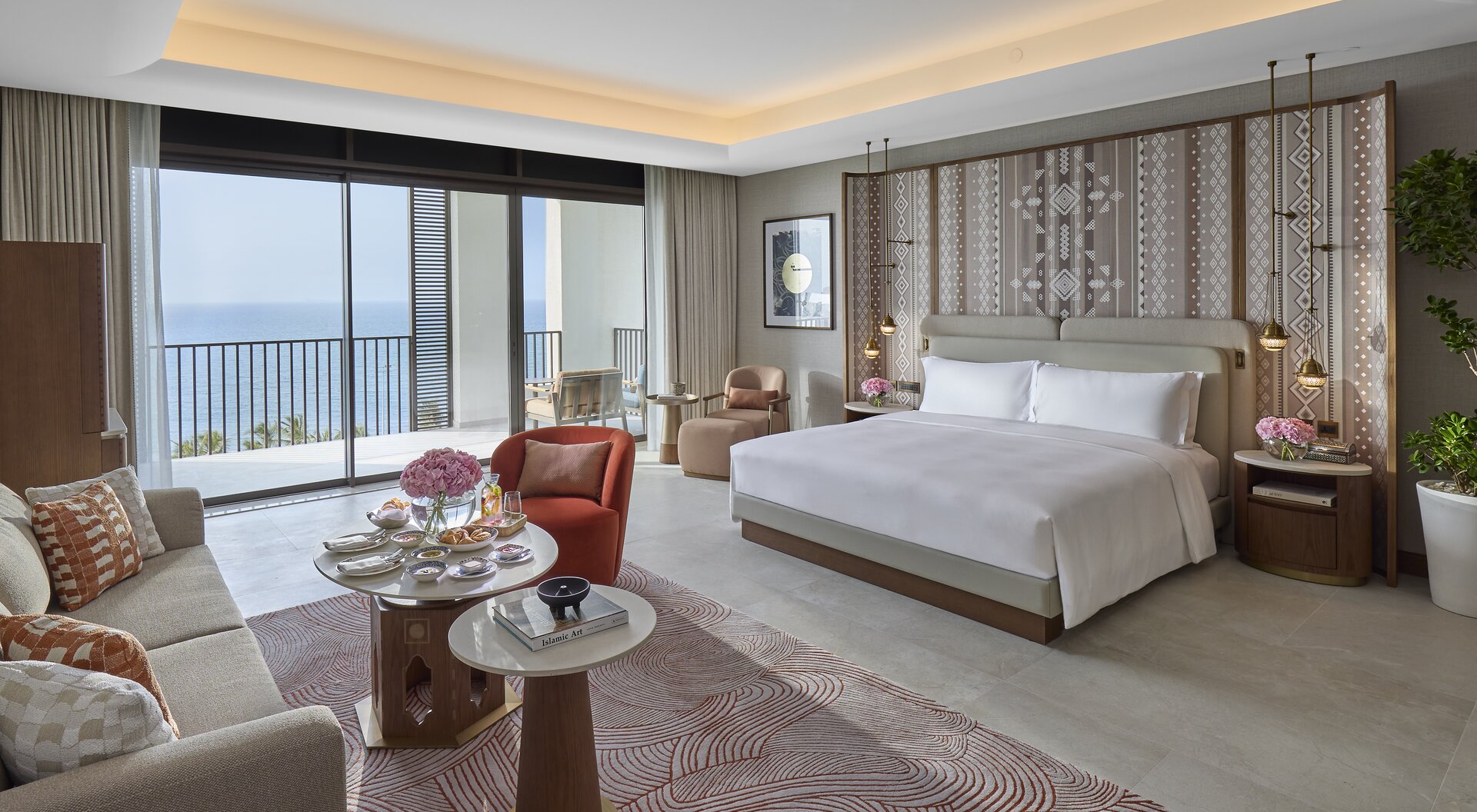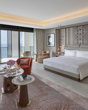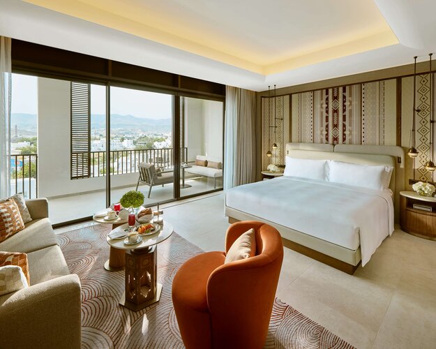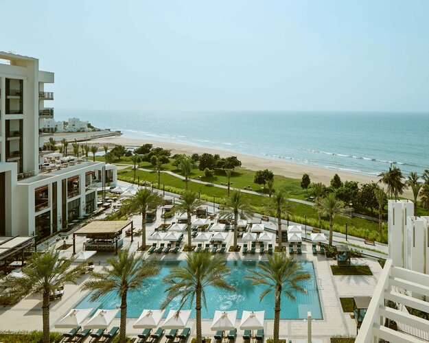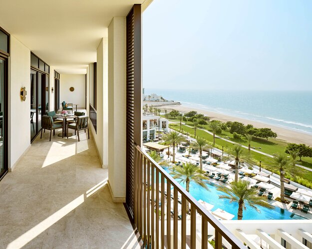 Das Mandarin Oriental, Muscat liegt an der malerischen Küste Omans und bietet luxuriösen Komfort in eleganter arabischer Architektur. Die geräumigen Zimmer, Suiten und Villen überzeugen mit modernem Design, privatem Balkon oder Terrasse und Blick auf den Golf von Oman. Kulinarisch verwöhnen mehrere Restaurants mit regionaler und internationaler Küche, begleitet von exklusiven Weinen. Das Mandarin Oriental Spa bietet ganzheitliche Behandlungen, Massagen, Yoga und Wellnessprogramme. Gäste genießen Pools, Fitnesscenter, Tennis, Wassersportmöglichkeiten und Ausflüge zu Natur- und Kulturhighlights in der Umgebung. Das Resort vereint Luxus, Entspannung und eindrucksvolle Landschaften in harmonischer Atmosphäre.
