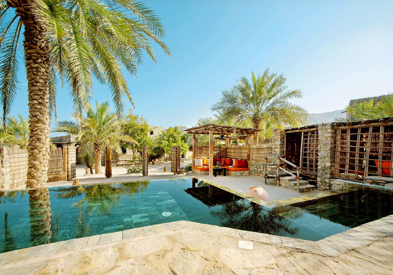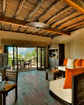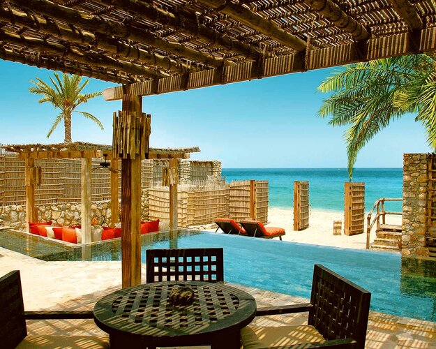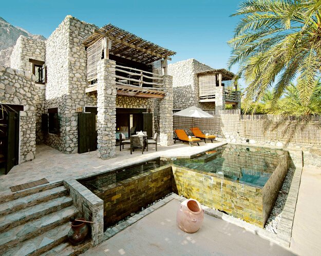 Team Hotels & HideawaysVollkommen idyllisch und herrlich abgeschieden bietet das Six Senses Spa at Zighy Bay Barfuß-Luxus von seiner schönsten Seite. Gelegen zwischen den schroffen Hajar-Gebirge und einem kilometerlangen Sandstrand in Musandam ist bereits die Anfahrt zum Hotel spektakulär. Der Stil ist rustikal und schick: Umgeben von mehr als 1.500 Dattelpalmen und Sandwegen mit Feigen- und Granatapfelbäumen sowie umherlaufenden Ziegen, verfügt jede der 82 Steinvillen über einen privaten Plunge Pool, eine Außendusche und einen eigenen Butler. Die Gäste werden aufgefordert, barfuß zu gehen, während von Mobiltelefonen abgeraten wird.