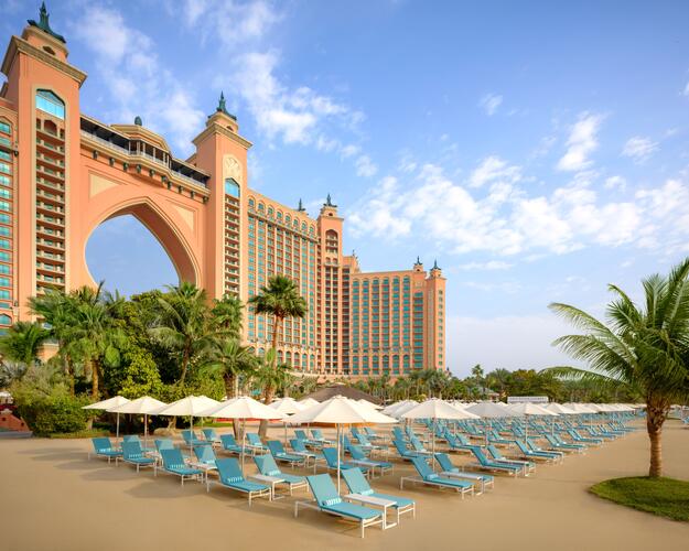 Team Hotels & HideawaysDubai – eine Destination, die für spektakuläre Superlative, futuristische Architektur und unvergleichlichen Luxus steht – empfängt Sie mit einer einzigartigen Mischung aus Tradition und Moderne. Auf der weltberühmten Palmeninsel The Palm Jumeirah erhebt sich das ikonische Atlantis The Palm als eines der eindrucksvollsten Resorts der Stadt. Dieses außergewöhnliche Luxushotel vereint maritimes Flair mit einer Erlebniswelt der Extraklasse und bietet einen Rückzugsort, der gleichzeitig Abenteuer und Entspannung verspricht. Umgeben vom türkisfarbenen Arabischen Golf eröffnet sich hier eine Kulisse, die ihresgleichen sucht. Die besondere Verbindung aus urbanem Glanz und faszinierender Unterwasserwelt wird hier auf eindrucksvolle Weise erlebbar. Außergewöhnliche Architektur, erstklassiger Service und emotionale Erlebnisse verschmelzen zu einer unvergesslichen Reiseerfahrung. Ein Ort, der wie geschaffen ist für anspruchsvolle Genießer, die das Besondere suchen und höchsten Wert auf Exklusivität und außergewöhnliche Momente legen.