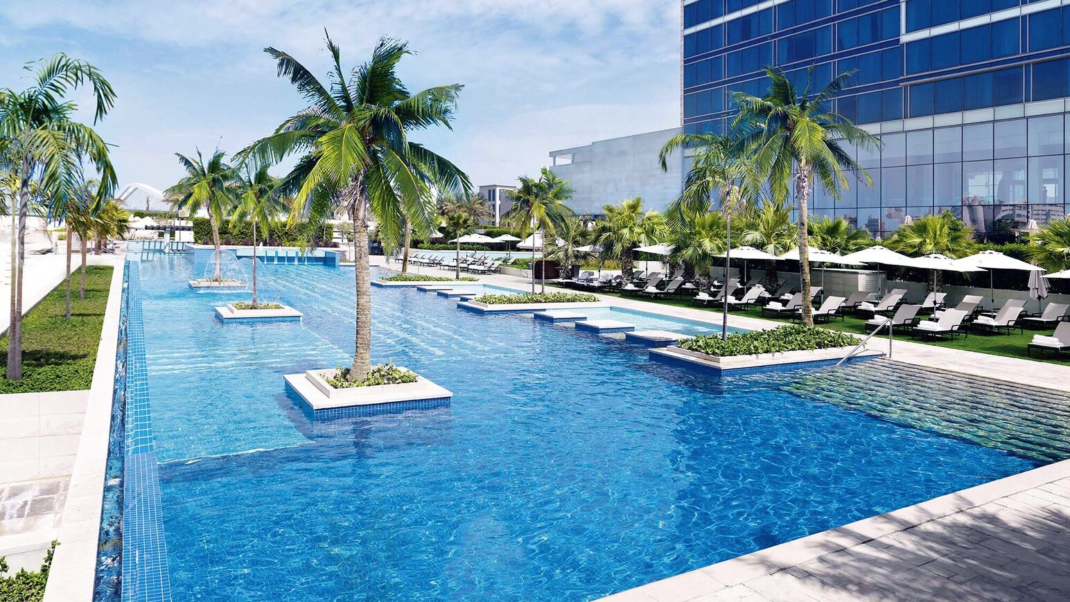 Team Hotels & HideawaysWie ein ruhiger Atemzug zwischen Meer und Wüste liegt das Fairmont Bab Al Bahr an der glitzernden Küste Abu Dhabis. Das Licht des Arabischen Golfs spiegelt sich in der modernen Architektur, während sich gegenüber die schneeweißen Kuppeln der Sheikh-Zayed-Moschee im Wasser zeichnen – ein Anblick von stiller Größe, der den Moment entschleunigt. Palmen wiegen sich im warmen Wind, das Meer schimmert in endlosen Blautönen, und jeder Sonnenuntergang taucht die Szenerie in ein sanftes Gold. Im Inneren verbindet sich zeitgenössische Eleganz mit arabischer Gelassenheit: weite Räume, klare Linien und eine Atmosphäre, die Raum zum Ankommen lässt. Hier fließen Tage mühelos ineinander, getragen von leiser Exklusivität, sinnlicher Ruhe und dem Gefühl, genau dort zu sein, wo Luxus nicht laut sein muss, um tief zu wirken.