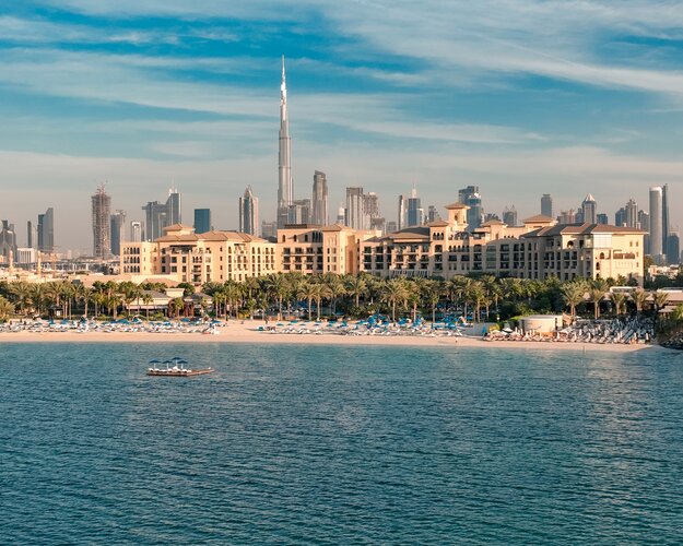 Das Four Seasons Resort Dubai at Jumeirah Beach liegt direkt am Privatstrand der Stadt mit Blick auf den Persischen Golf und die Skyline Dubais. Die Architektur verbindet moderne Eleganz mit arabischen Akzenten, umgeben von üppigen Gärten, Wasserläufen und Palmen. Die 237 Zimmer, Suiten und Villen bieten helle, großzügige Wohnbereiche, private Terrassen oder Balkone sowie zeitgemäße Ausstattung. Gäste genießen mehrere Pools, direkten Strandzugang, luxuriöse Wellnessangebote, Fitnessmöglichkeiten und eine Auswahl an Restaurants und Bars. Das Resort vereint städtische Nähe, Meerblick und ruhige Rückzugsbereiche in einem luxuriösen Ambiente.