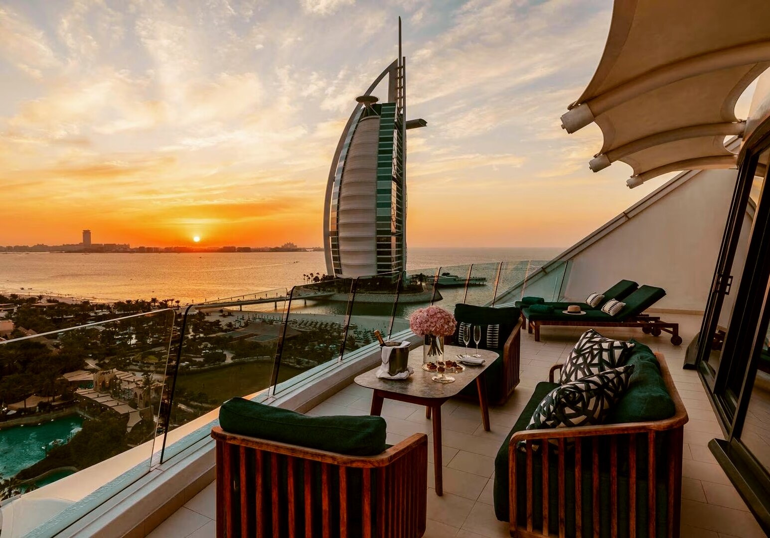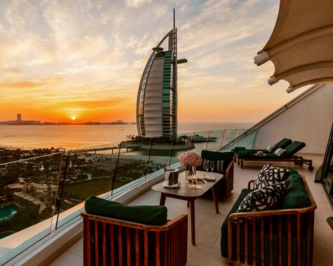Als Inbegriff von arabischem Luxus thront das Palm Jumeirah Beach Hotel in Jumeirah, dem exklusivsten Stadtteil Dubais, direkt am feinsandigen Privatstrand. Entspannung pur erwartet Sie an der wundervollen Poolanlage und im Spa, das nicht nur mit einer hochmodernen Ausstattung und ausgewählten Behandlungen verzaubert, sondern auch mit der Außenterrasse, von der sich Ihnen ein fantastisches Panorama bietet. Familien schätzen den unbegrenzten Zugang zum direkt vor der Anlage liegenden Wild Wadi Wasserpark.