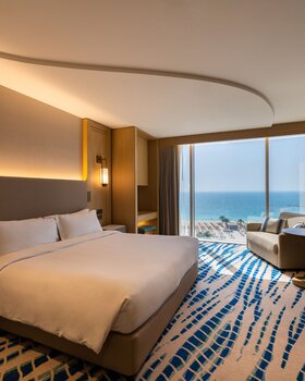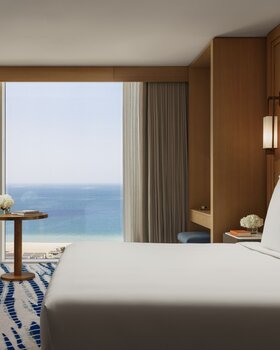 Team Hotels & HideawaysBereits die Architektur des Jumeirah Beach Hotels lässt klar erkennen, dass Ihnen in dem traditionsreichen Luxushotel ein einzigartiger Aufenthalt bevorsteht. Mit seinem wellenförmigen Design trägt das Gebäude maßgeblich zur markanten Skyline Dubais bei. Doch auch in Hinblick auf Service, Komfort und Stil werden hinter der eleganten Glasfassade neue Standards gesetzt. Direkt am privaten, namensgebenden Sandstrand gelegen, eröffnen sich Ihnen spektakuläre Ausblicke auf den glitzernden Persischen Golf - sowohl von Ihrer Liege am Strand als auch von den üppig grünen Gärten, dem mit modernsten Geräten ausgestatteten Fitnessstudio und jedem der lichtdurchfluteten Zimmer und Suiten. Kulinarisch erwartet Sie ebenfalls ein Höhepunkt nach dem anderen. Sogar im wahrsten Sinne des Wortes: In der Uptown Bar in der 24. Etage speisen Sie gleichsam über den Wolken und genießen atemberaubende Aussichten über das Meer, die Palm Dubai und die Stadt.