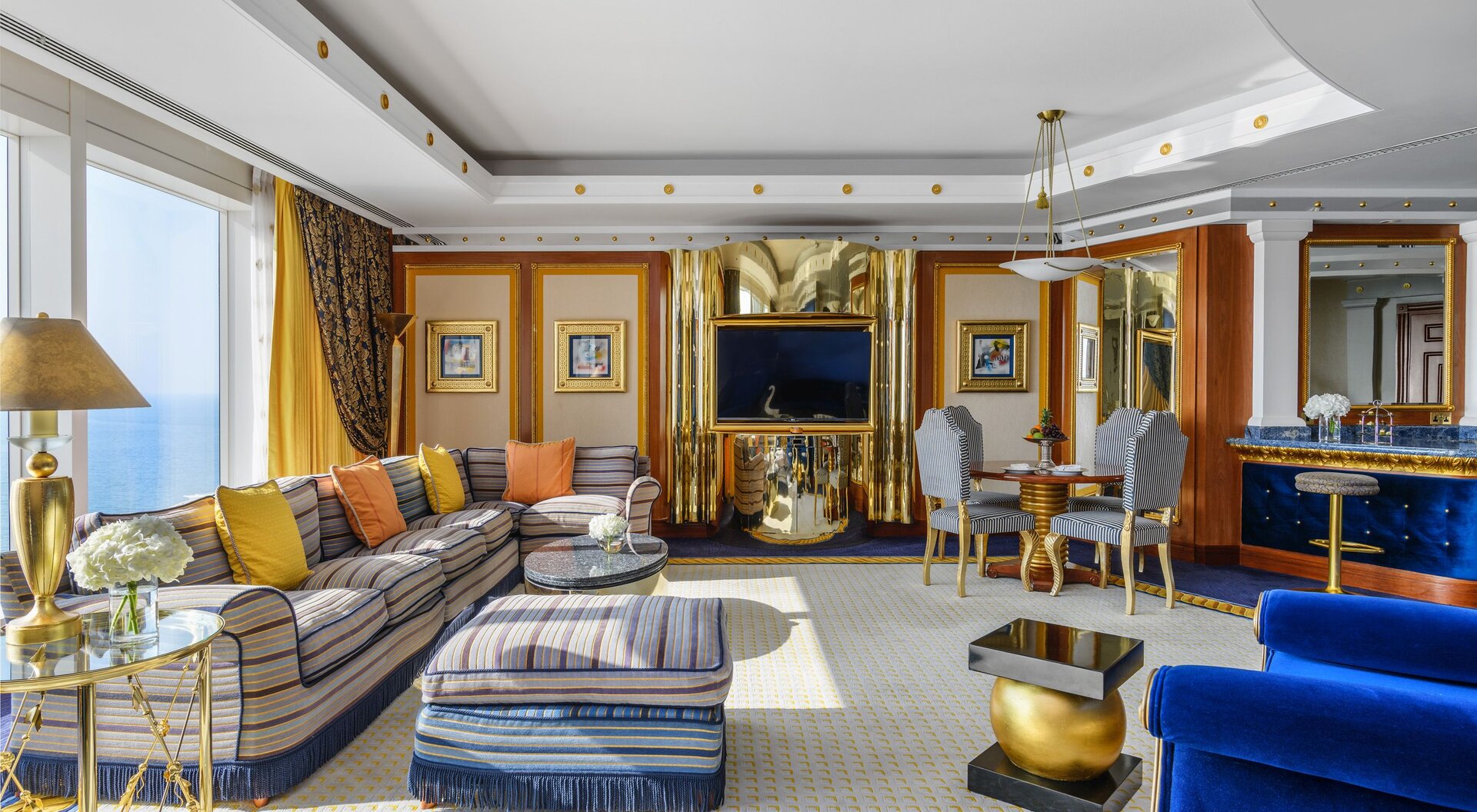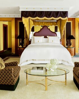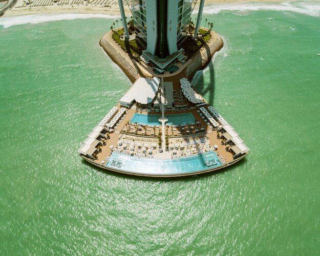 Das Jumeirah Burj Al Arab gilt als eines der ikonischsten Luxushotels der Welt und ist ein Wahrzeichen Dubais. Auf einer eigenen Insel gelegen, beeindruckt das segelförmige Gebäude mit spektakulärer Architektur und kompromisslosem Service. Die ausschließlich aus Suiten bestehenden Unterkünfte bieten opulente Ausstattung, private Butler und atemberaubende Ausblicke auf den Arabischen Golf. Kulinarische Erlebnisse in mehrfach ausgezeichneten Restaurants, ein exklusiver Strandbereich sowie ein luxuriöser Spa machen den Aufenthalt zu einem Inbegriff von Glamour, Exklusivität und arabischer Gastfreundschaft auf höchstem Niveau.