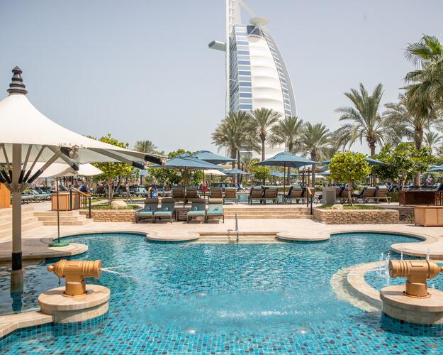 Im Jumeirah Al Naseem erleben Sie zeitgemäßen Luxus inmitten der weitläufigen Garten- und Wasserlandschaft des Madinat Jumeirah Resort. Das stilvolle Strandresort überzeugt mit hellen, großzügigen Zimmern, einem privaten Sandstrand und einer entspannten, eleganten Atmosphäre. Kulinarische Vielfalt auf höchstem Niveau, mehrere Pools und der Blick auf das ikonische Burj Al Arab machen jeden Aufenthalt zu einem besonderen Erlebnis zwischen Ruhe, Komfort und arabischer Gastfreundschaft.