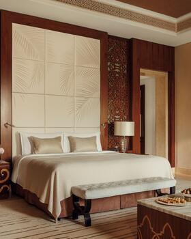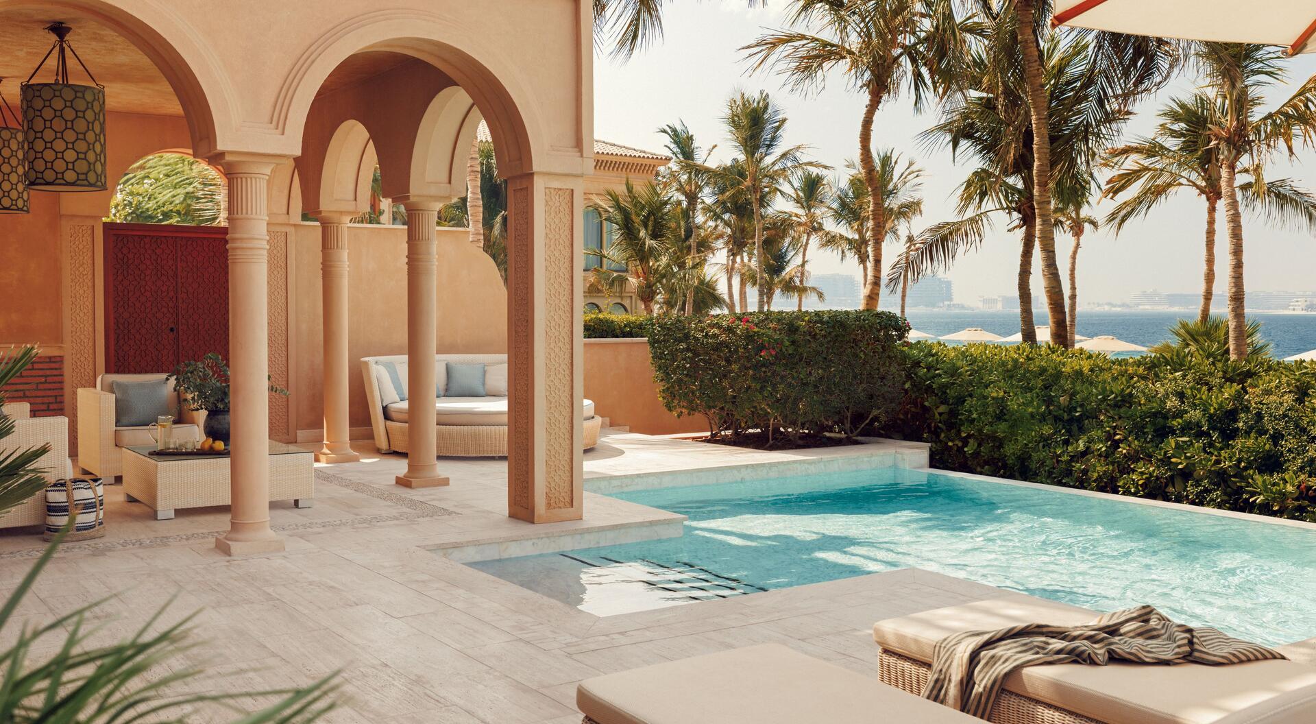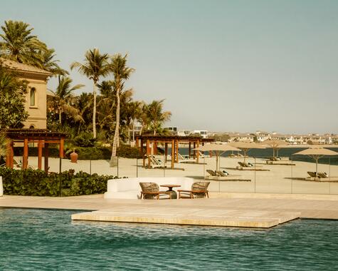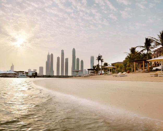 One & Only The Palm Dubai ist ein exklusives 5-Sterne-Luxusresort auf dem eleganten Palm Jumeirah mit direktem Blick auf den Persischen Golf und die Skyline Dubais. Umgeben von einem privaten Sandstrand, bietet es elegante Zimmer, Suiten und Villen im andalusisch-mediterranen Stil, viele mit Meerblick oder privatem Pool. Gäste genießen erstklassige Gastronomie in mehrfach ausgezeichneten Restaurants, ein One & Only Spa mit maßgeschneiderten Behandlungen, Fitnessangebote und luxuriöse Lounges. Ideal für Erholung, Gourmet-Erlebnisse und exklusiven Service, kombiniert das Resort Privatsphäre, Strandidylle und Nähe zu Dubais Highlights – nur eine kurze Fahrt von Einkaufs- und Unterhaltungszentren entfernt.