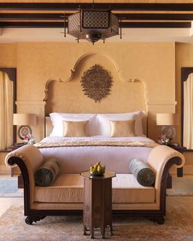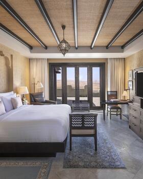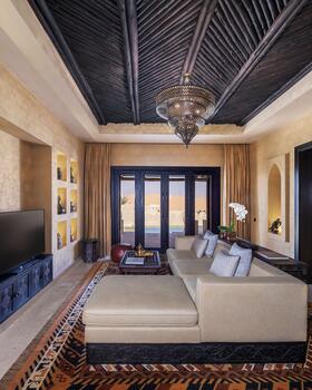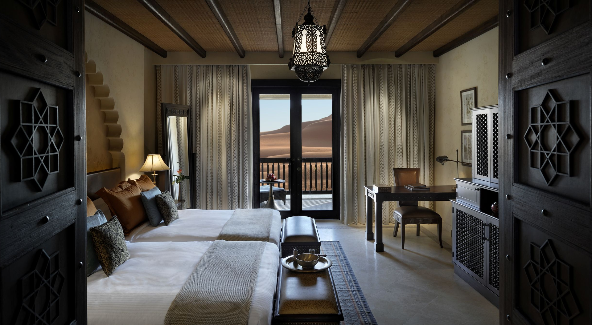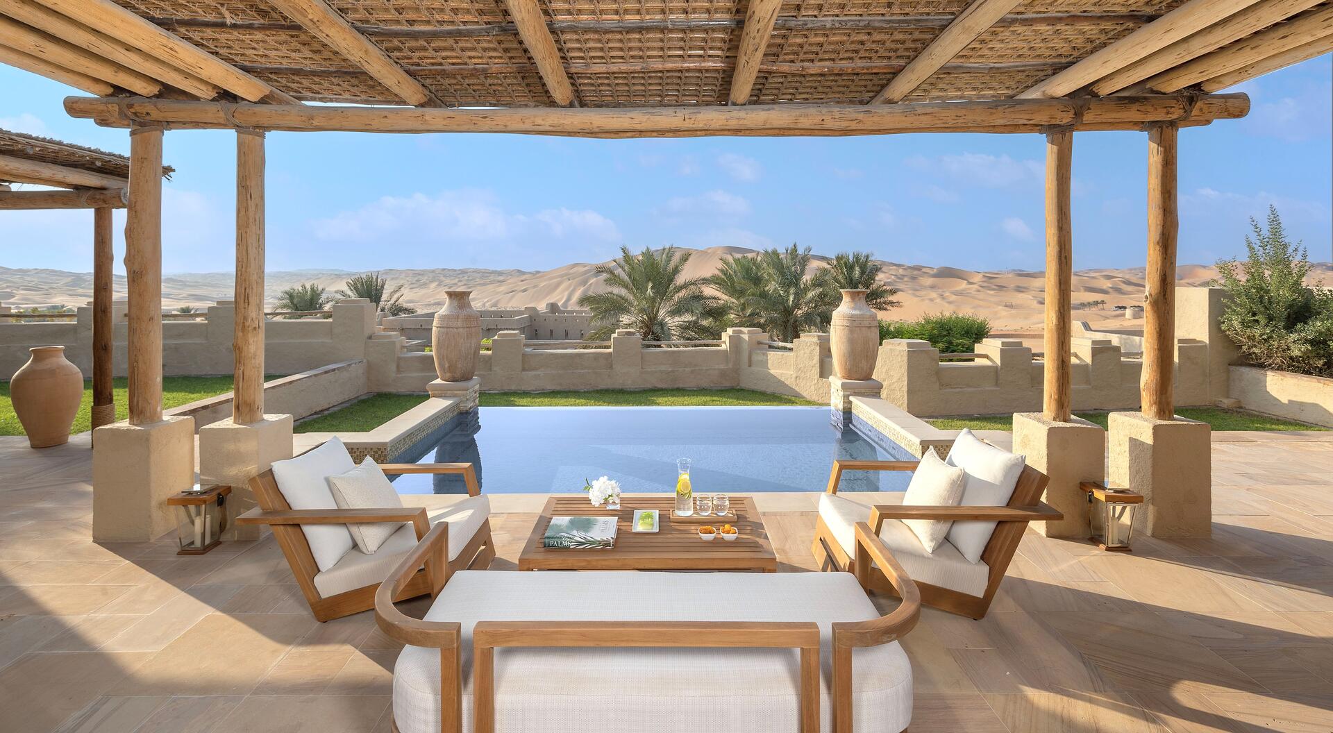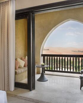 Das Qasr Al Sarab Desert Resort by Anantara ist eine luxuriöse Wüstenoase in der Liwa-Wüste am Rand von Abu Dhabi, etwa 90 Minuten Fahrt von der Stadt entfernt. Das Resort erhebt sich wie eine Fata Morgana aus den goldenen Dünen des „Leeren Viertels“ und verbindet arabische Tradition mit zeitgemäßem Luxus. Gäste übernachten in stilvoll eingerichteten Zimmern, eleganten Suiten oder großzügigen Poolvillen mit privatem Tauchbecken und Blick über die endlose Wüste. Mehrere Restaurants und Bars servieren regionale und internationale Küche unter dem Sternenhimmel, während das preisgekrönte Anantara Spa mit Hammam, Massagen und Wellness-Anwendungen Entspannung bietet. Aktivitäten reichen von Kameltrekking und Wüstenspaziergängen bis zu kulturellen Erlebnissen und romantischen Dinner-Erlebnissen in der Wüste.