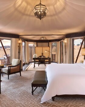 The Ritz-Carlton, Ras Al Khaimah, Al Wadi Desert liegt mitten in der spektakulären Wüste von Ras Al Khaimah, umgeben von Sanddünen und Naturreservaten. Das Luxusresort bietet elegante Villen mit privatem Pool, Terrassen und Wüstenblick. Zur Ausstattung zählen zwei Pools, mehrere Restaurants & Bars, Spa, Fitnessraum und Outdoor-Aktivitäten. Gäste genießen Reitmöglichkeiten, Wüstensafaris, Bogenschießen, Yoga, Wanderungen und Naturbeobachtungen. Ein exklusives Retreat für Ruhe, Luxus und authentische Wüstenerlebnisse.
