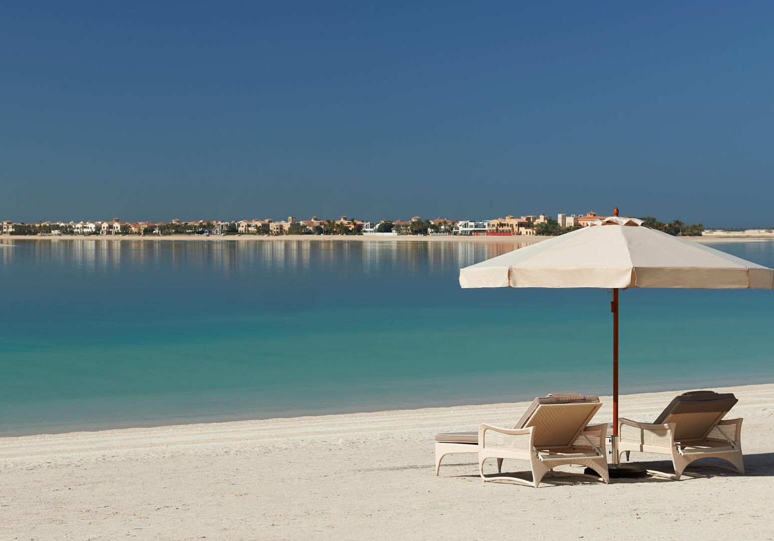 Ein Sundowner am Privatstrand mit Blick über das Meer und die Lichter Dubais – hier verschmelzen Ruhe und Glamour zu einem unvergesslichen Abend
