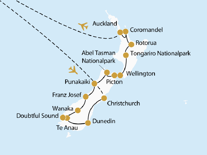 Auf der anderen Seite der Erde wartet eines der landschaftlich überwältigendsten Länder der Welt – Neuseeland. Hier finden sich – auf vergleichsweise kleinem Raum – Naturwunder wie Vulkane und Geysire, Regenwälder und Gletscher, hier leben der flugunfähige Vogel Kiwi und der kecke Kea, hier genießt das Auge immer wieder eine unberührte, sensationelle Landschaft. Der Doubtful Sound gilt als einer der schönsten Fjorde der Welt, oft begleiten Delfine das Schiff, auf dem Sie auch übernachten. An der Westküste der Südinsel treffen in Franz Josef die Südalpen auf den Küstenregenwald und in Punakaiki schichten sich Felsen wie dünne Pfannkuchen übereinander. Kommen Sie mit – ans schönste Ende der Welt.