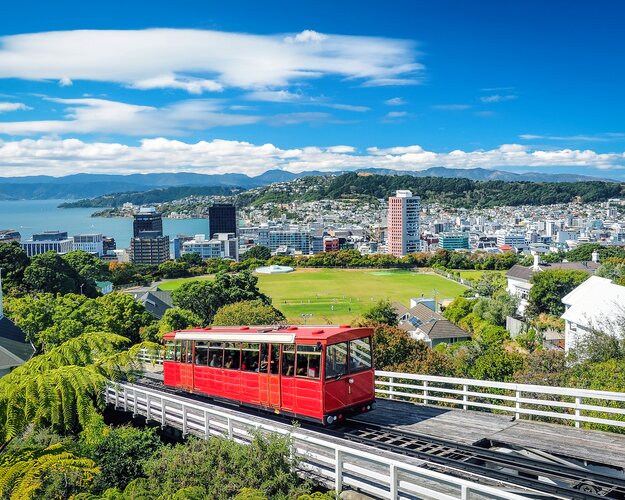 Fahrt nach Picton und Weiterfahrt mit der Fähre durch die Marlbourough Sounds zur Nordinsel nach Wellington. Es ist eine der schönsten Fährstrecken der Welt: Kleine, grün bewachsene Inselchen liegen im tiefblauen Wasser. Halten Sie Ausschau nach Großen Tümmlern - sie begleiten die Fähren gerne. Wenn Sie Glück haben, können Sie sogar Buckelwale beobachten. (F)