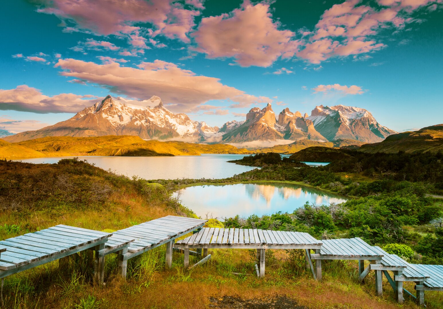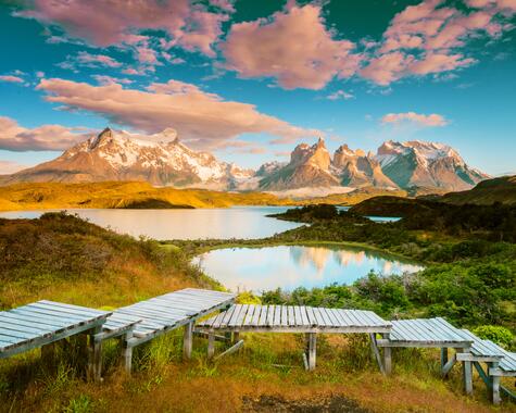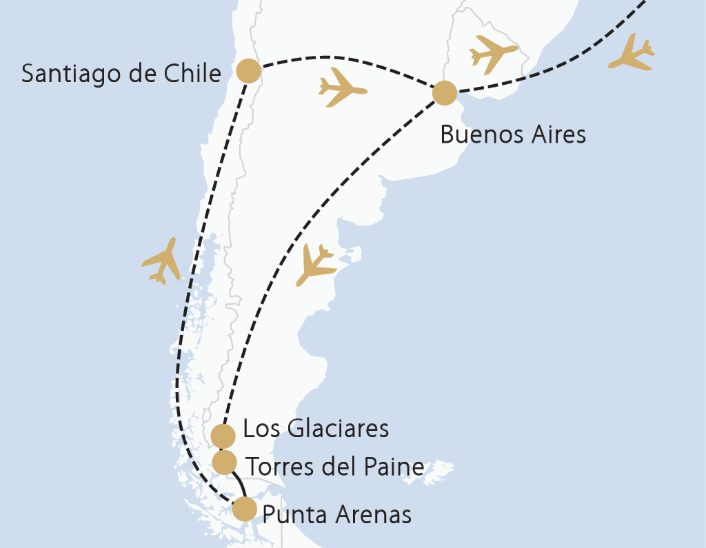 Buenos Aires als Auftakt kommt noch ganz städtisch daher - mit leidenschaftlichem Tango, den mitunter besten Steaks der Welt und Belle Époque. Dann beginnt für Sie im Nationalpark Los Glaciares bereits die große Einsamkeit Patagoniens. Am Perito-Moreno-Gletscher krachen die Eisberge in den Lago Argentino und im Nationalpark Torres del Paine recken sich die Granittürme in den Himmel und bilden eine überwältigende Kulisse für Guanacos, Nandus und die scheuen Pumas. Lernen Sie das traditionelle Leben der dort lebenden Gauchos kennen und lassen Sie sich das authentische Asado auf einer Premium Estancia schmecken. Zum Abschluss entdecken Sie Chiles koloniale Hauptstadt Santiago de Chile und stoßen bei einer Weinprobe mit den köstlichen chilenischen Weinen auf Ihre Reise ans südliche Ende Amerikas an!