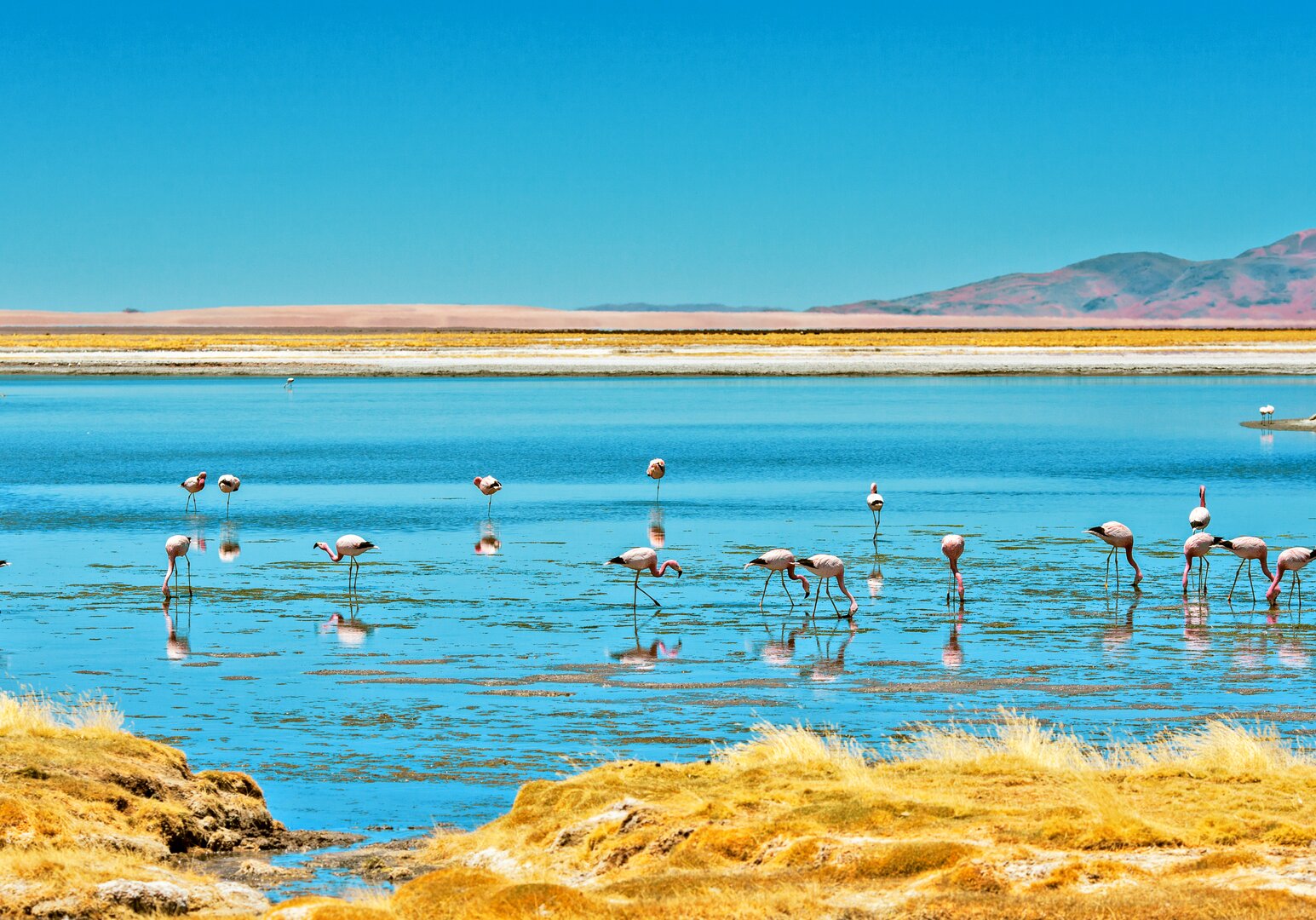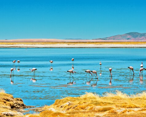 Das Abenteuer beginnt! Mit privatem Guide und Allradantrieb durchqueren Sie die Wüste von Chile nach Bolivien. Zunächst geht es durchs Altiplano zum chilenisch-bolivianischen Grenzübergang Hito Cajón. Auf dem Weg nach Norden besuchen Sie die Geysire von Sol de la Mañana und eine Vielzahl von Salzebenen, Feuchtgebieten und Lagunen. Die Laguna Colorada ist der perfekte Ort, um Flamingos in ihrem natürlichen Lebensraum zu beobachten. Das Blau des Himmels, das Braun der Berge und das leuchtende Rot der Lagune haben der Lagune ihren Namen gegeben. Dort genießen Sie auch Ihr Mittagessen. Anschließend geht es zur Explora Mountain Lodge Ramaditas, wo Sie den Sonnenuntergang genießen und sich für den nächsten Tag erholen. Wenn Sie die Augen schließen, können Sie die unendliche Stille und Einsamkeit mit allen Sinnen spüren. (F/M/A)