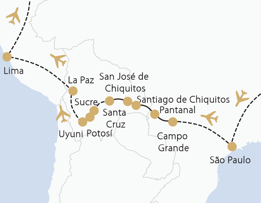 Ausflug An Tag 06 erwartet Sie bei der Überquerung der Grenze von Brasilien nach Bolivien eine längere Fahrt von insgesamt ca. 8 Stunden. Natürlich bauen wir hier mehrere Zwischenstopps sowie eine Mittagspause mit ein. Auch an Tag 12 beim Besuch des Eduardo Abaroa Nationalparks handelt es sich um einen langen Tag der im frühen Morgengrauen beginnt und erst am späten Nachmittag endet.