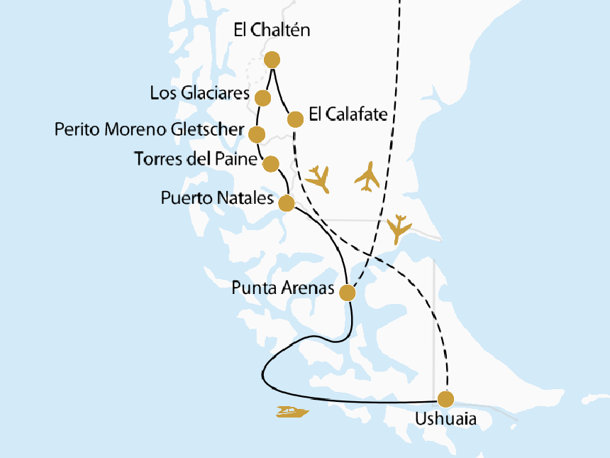 Inlandsflug am Nachmittag nach Ushuaia auf Feuerland (Flugdauer ca. 1,5 Std.). Nach der Landung haben Sie Zeit für einen Bummel durch die hübsche, kleine Stadt am Beagle-Kanal, die zu den beiden südlichsten Städten der Welt gezählt wird. Für den Vormittag in El Calafate empfehlen wir Ihnen die Nativo Experience. Diese Tour entführt Sie entlang der malerischen Ufer des Lago Argentino in die faszinierende Welt der Tehuelche, einer der ältesten indigenen Kulturen Patagoniens. In komfortablen 4x4-Fahrzeugen folgen Sie den Spuren früher Expeditionen, entdecken jahrtausendealte Felszeichnungen und tauchen ein in die Geschichte jener Menschen, die einst diese ungezähmte Landschaft durchstreiften. Begleitet von einem erfahrenen englischsprachigen Guide erleben Sie zusammen mit anderen internationalen Reisenden in kleiner Gruppe eine eindrucksvolle Verbindung aus Natur, Kultur und Weitblick – perfekt als stimmungsvoller Ausklang für Ihre Zeit in El Calafate. Abgerundet wird das Erlebnis durch ein gemeinsames Mittagessen in authentischer Atmosphäre.(F)